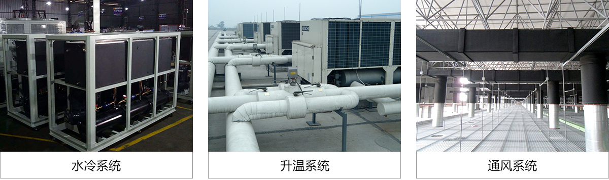 暖通工程包括:水冷系統(tǒng)、升溫降溫系統(tǒng)、通風(fēng)系統(tǒng)、新風(fēng)系統(tǒng)