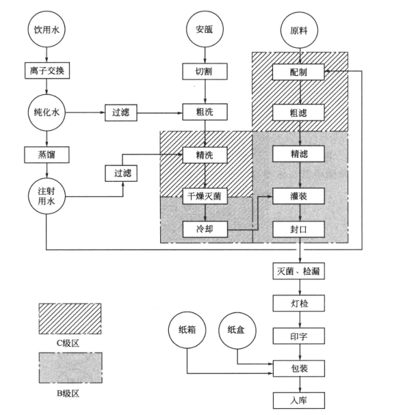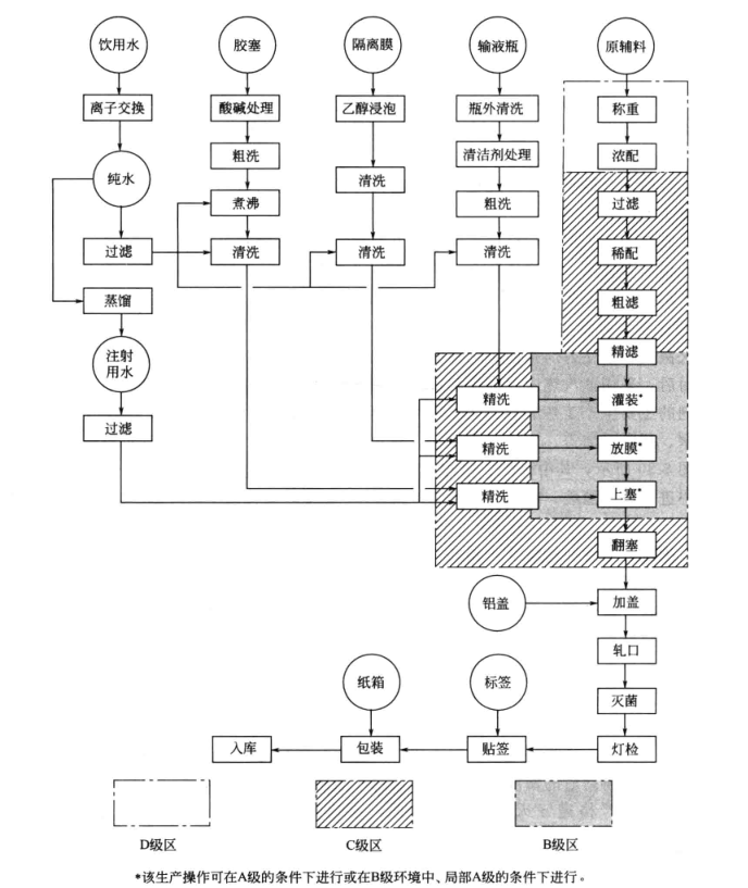 ①所有接觸藥液的設(shè)備、工具、容器和管道等,都要用清潔劑定期清洗,并用注射用水沖洗干凈。