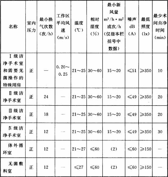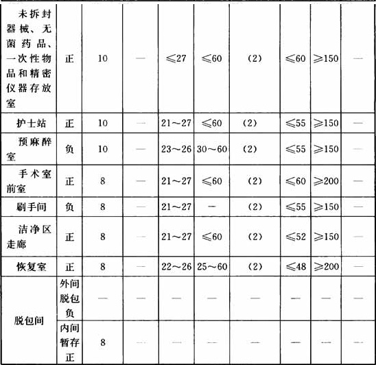 注:1 負(fù)壓手術(shù)室室內(nèi)壓力一欄應(yīng)為“負(fù)”。