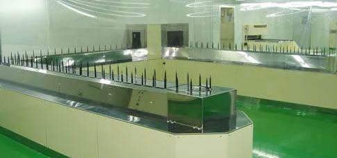 食品工廠萬級(jí)無塵車間隔間分為三部分,更衣室,千級(jí)區(qū)和百級(jí)區(qū),更衣室與千機(jī)區(qū),千級(jí)區(qū)與百級(jí)區(qū)均設(shè)風(fēng)淋室,無塵車間與室外設(shè)有物品出入通道傳遞箱。當(dāng)人員進(jìn)入無塵車間時(shí),首先要經(jīng)過風(fēng)淋室,對(duì)人體所帶的灰塵吹淋,減少人員帶入無塵車間的灰塵,傳遞箱則是對(duì)物品灰塵進(jìn)行吹淋,達(dá)到落塵的效果。