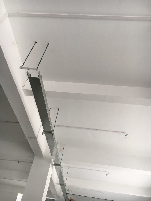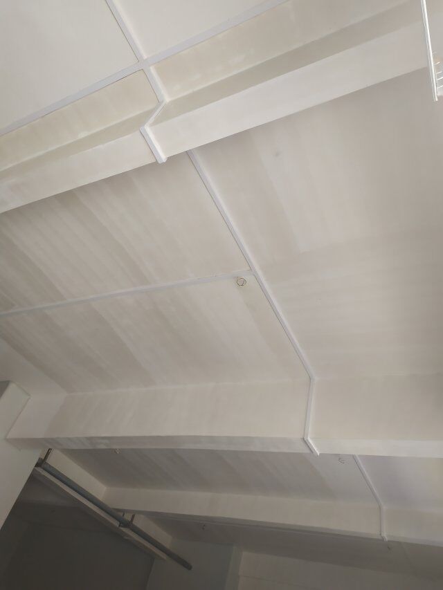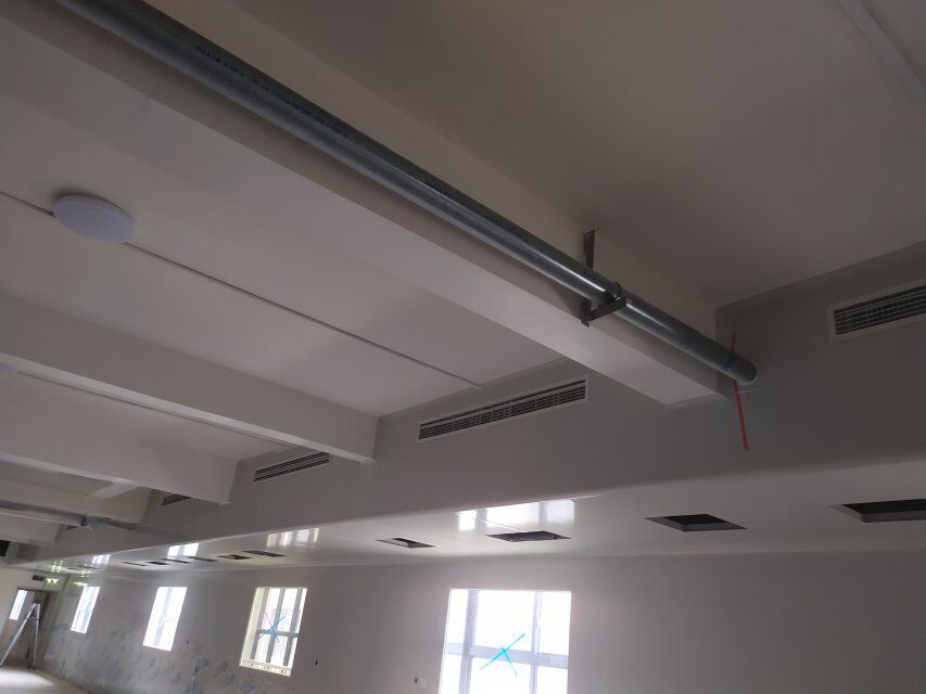 四川美料美味食品科技有限公司廠房施工現(xiàn)場,紫外燈安裝完成,二層地面施工