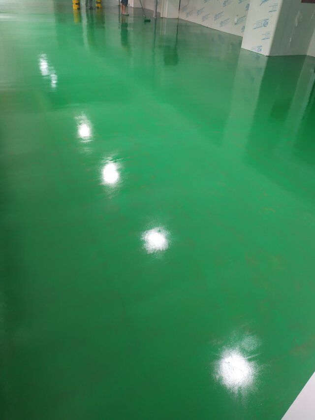 四川美料美味食品科技有限公司廠房裝修現(xiàn)場,地坪施工中