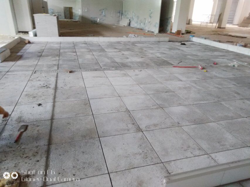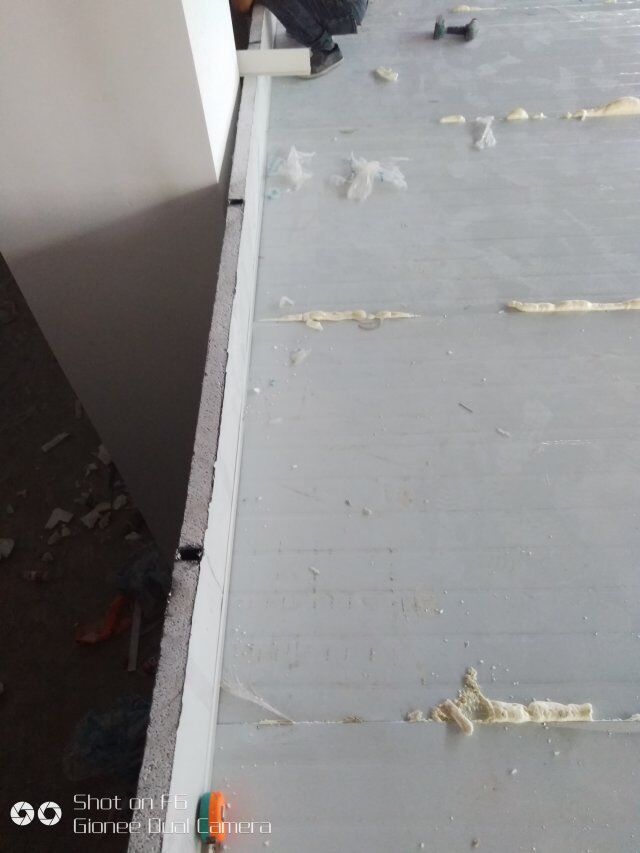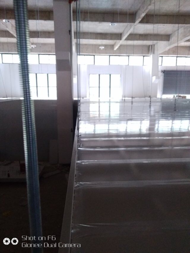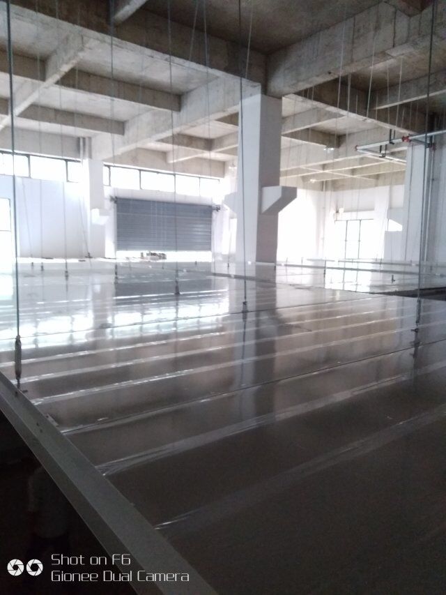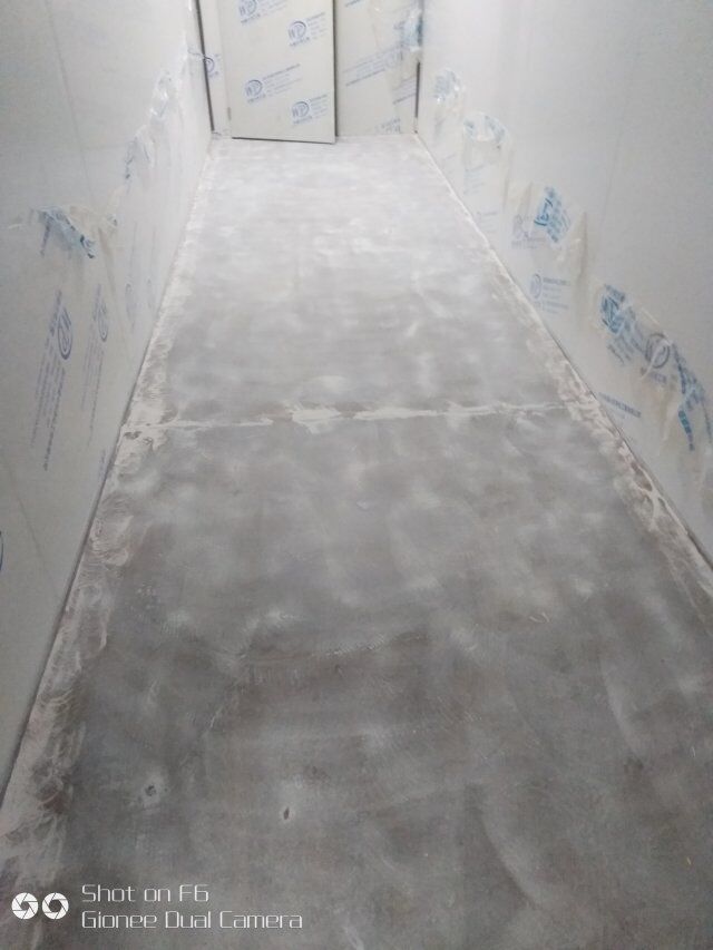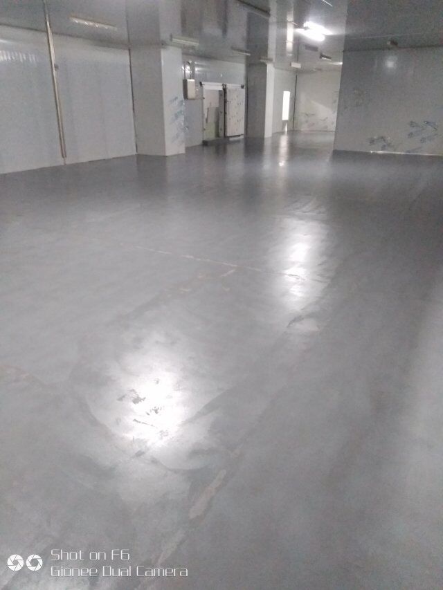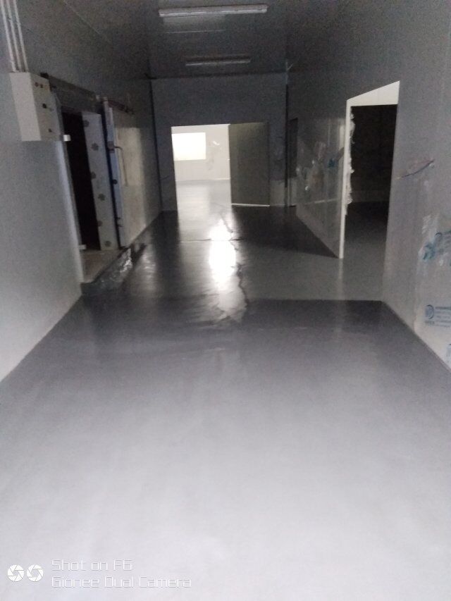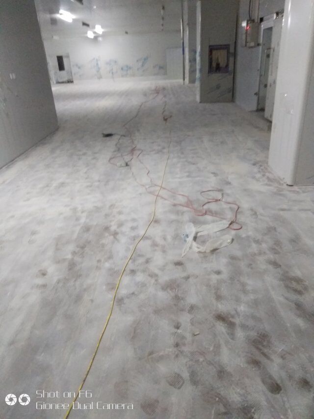 四川憨憨豆匠食品有限公司二期廠房裝修現(xiàn)場(chǎng),撕保護(hù)膜,地坪施工