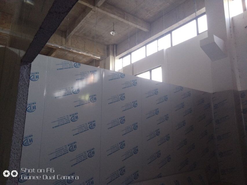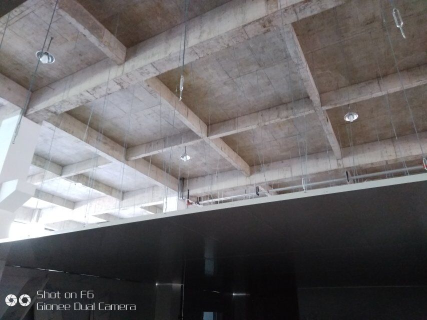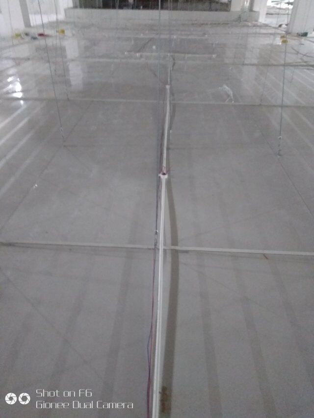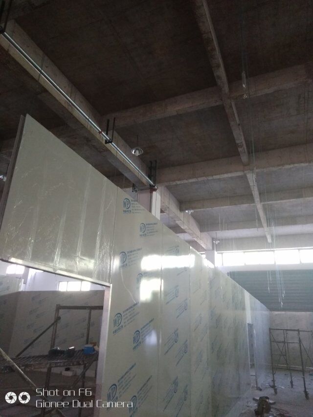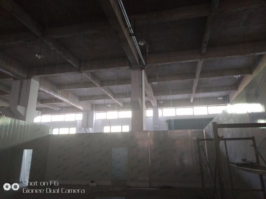 四川憨憨豆匠食品有限公司二期廠房裝修現(xiàn)場(chǎng):掉頂板,開關(guān)插座開孔