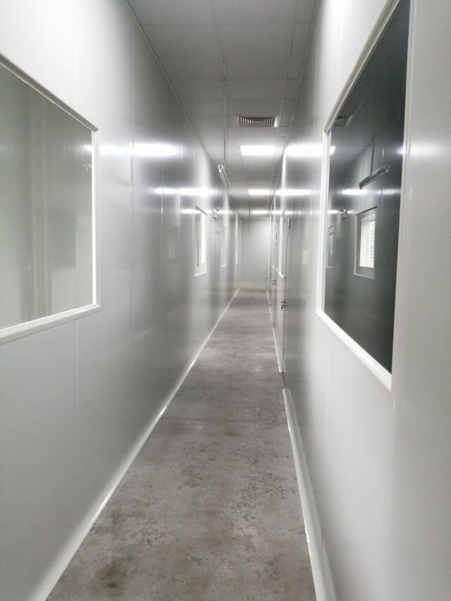 什邡昊陽農業發展有限公司廠房裝修現場,打膠立墻板