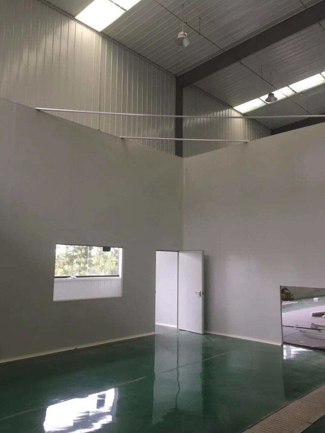 四川聚峰谷農業科技開發有限公司廠房裝修現場,地坪清理,板材開始安裝中