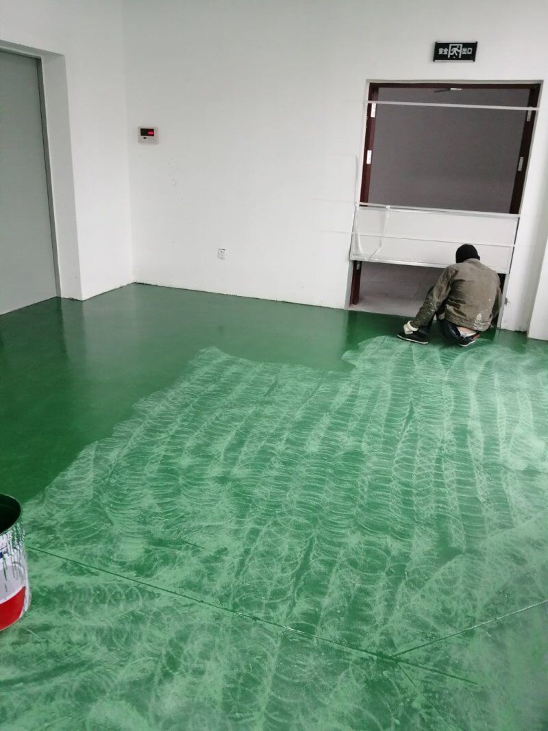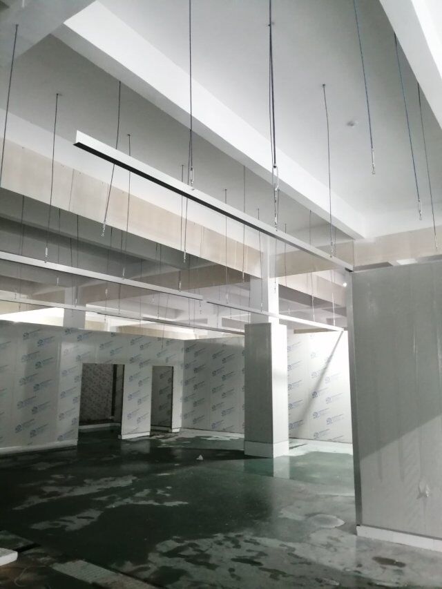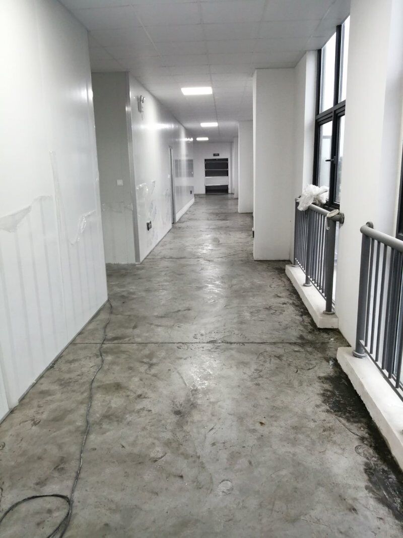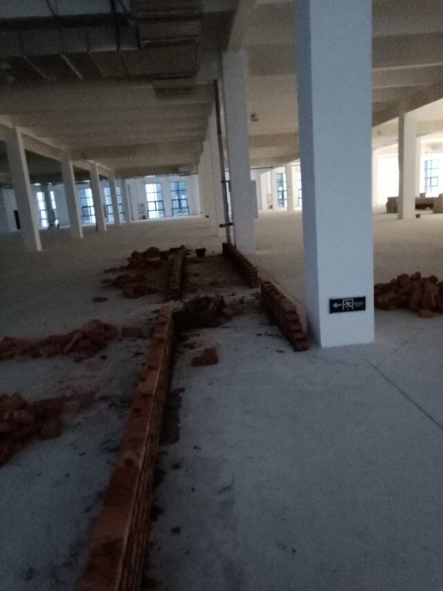 成都王老鴨食品有限公司廠房裝修現(xiàn)場,放線完成,隔斷擋水施工