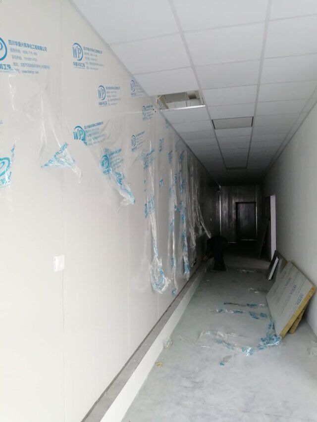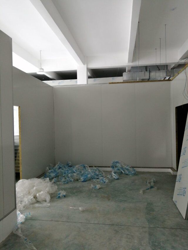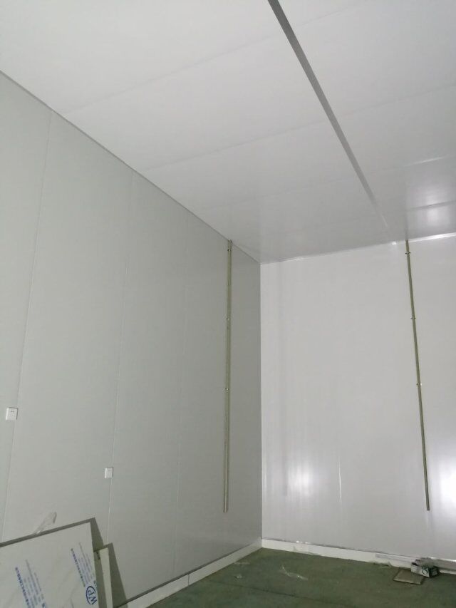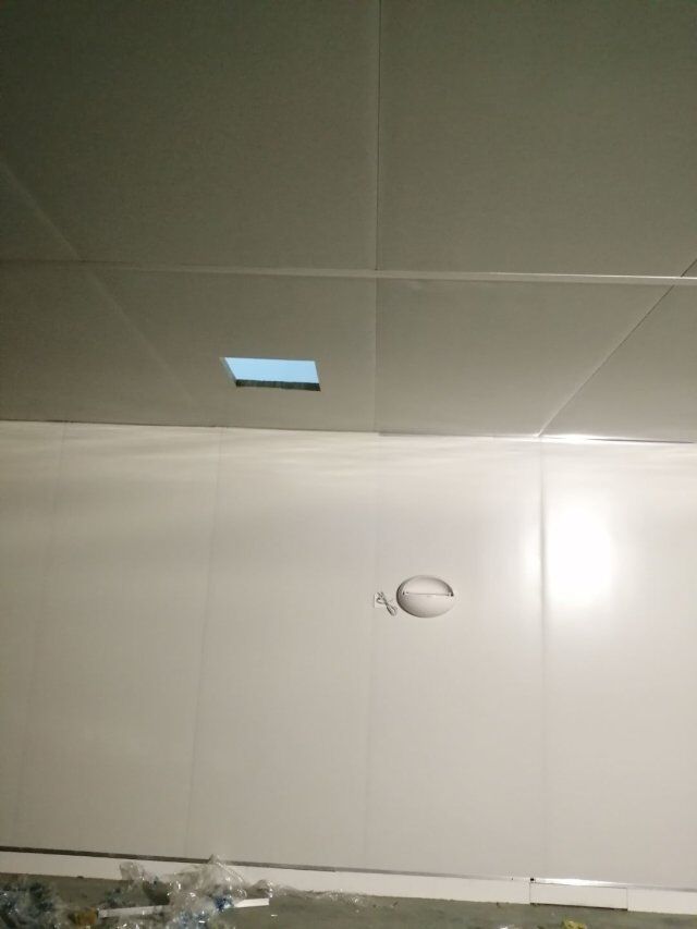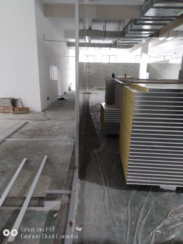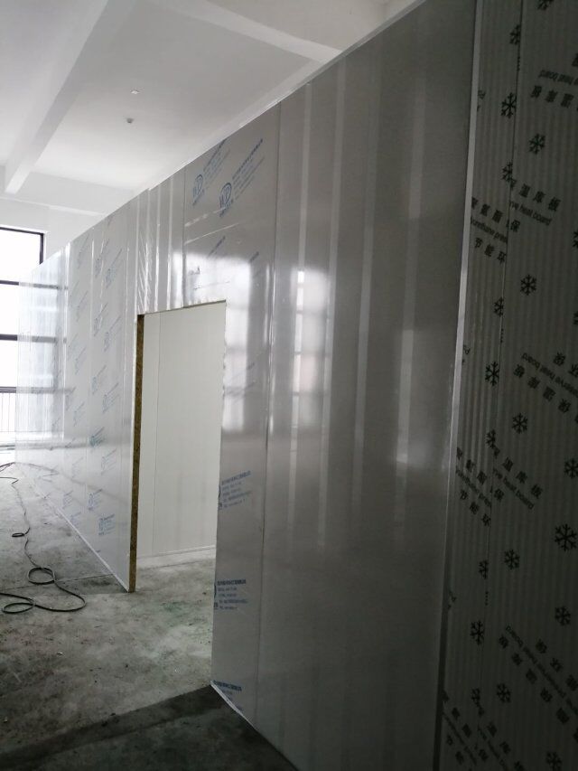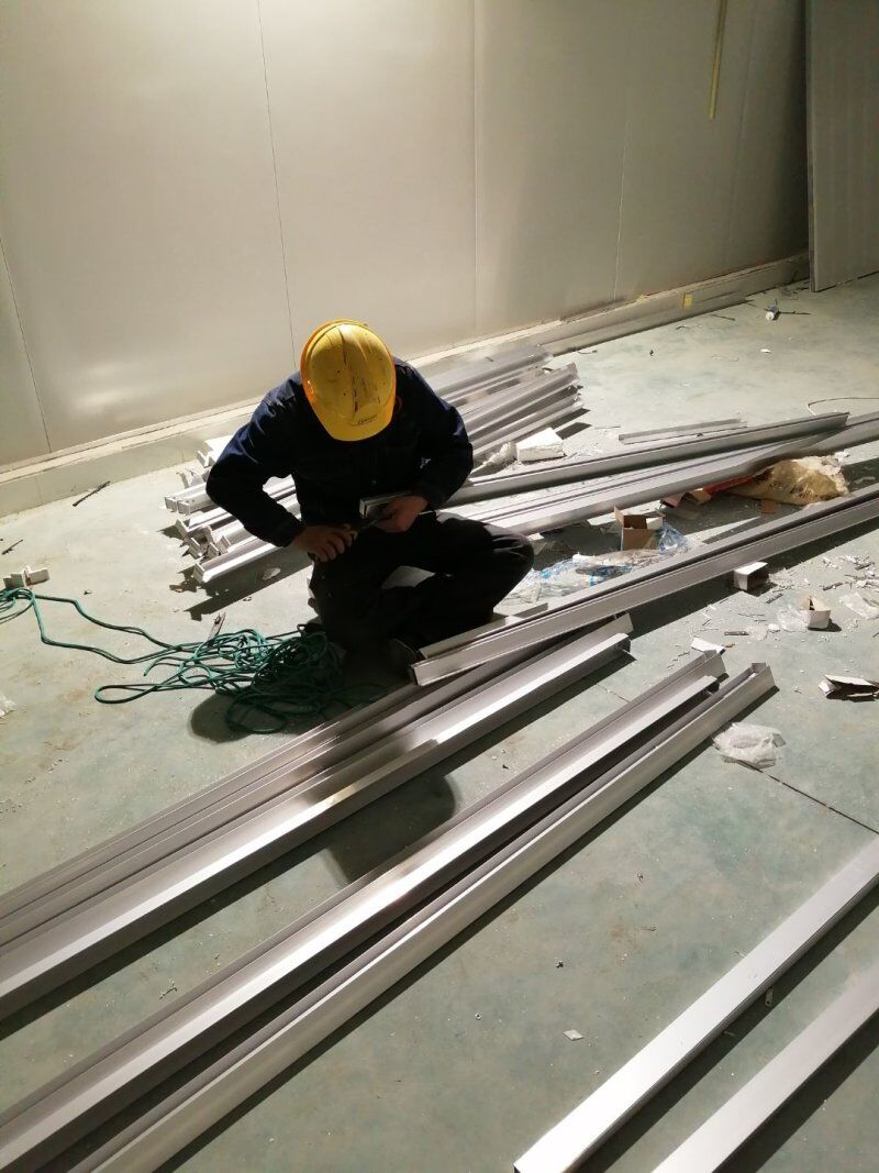 1.墻板完成百分之八十 2.吊頂?shù)踅畎惭b完成,3.門料下料切角施工