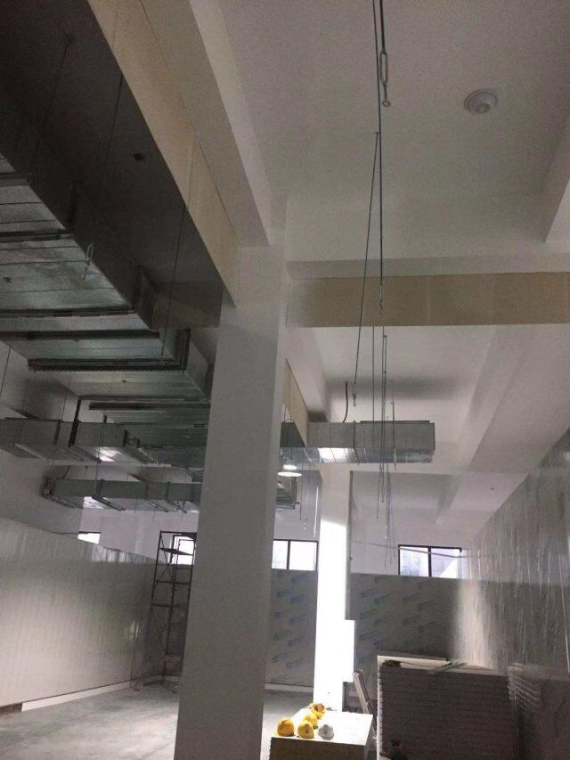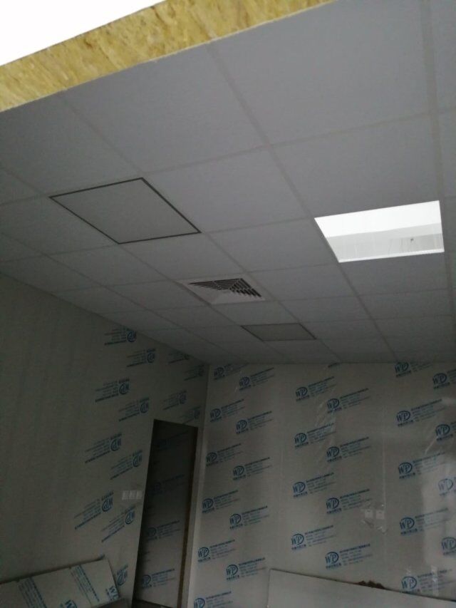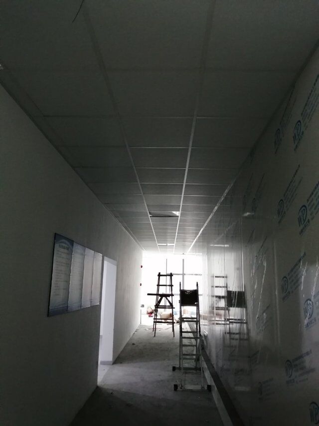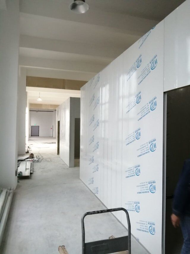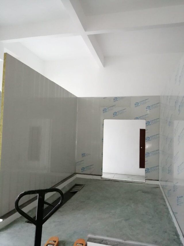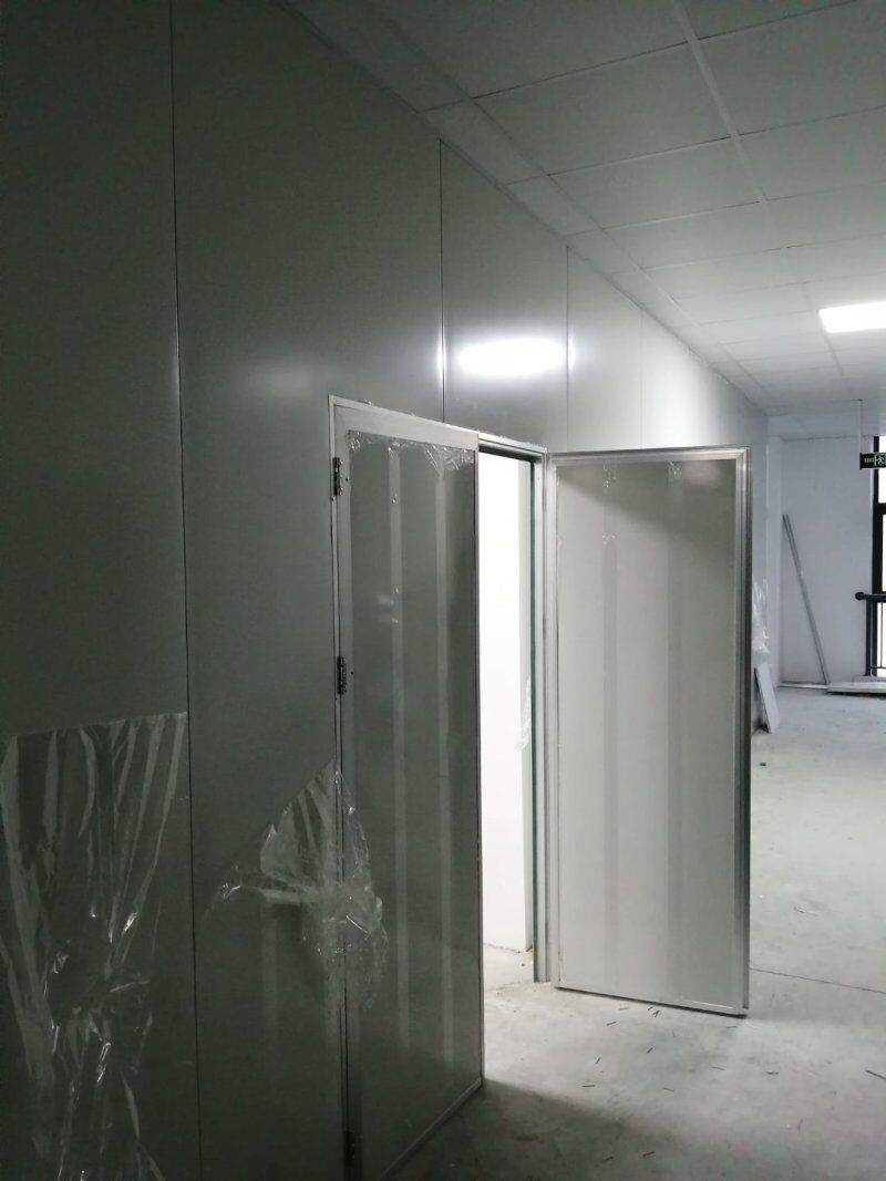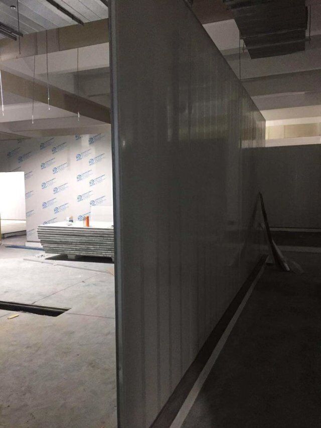 1.墻板完成百分之八十 2.吊頂?shù)踅畎惭b完成,3.門料下料切角施工