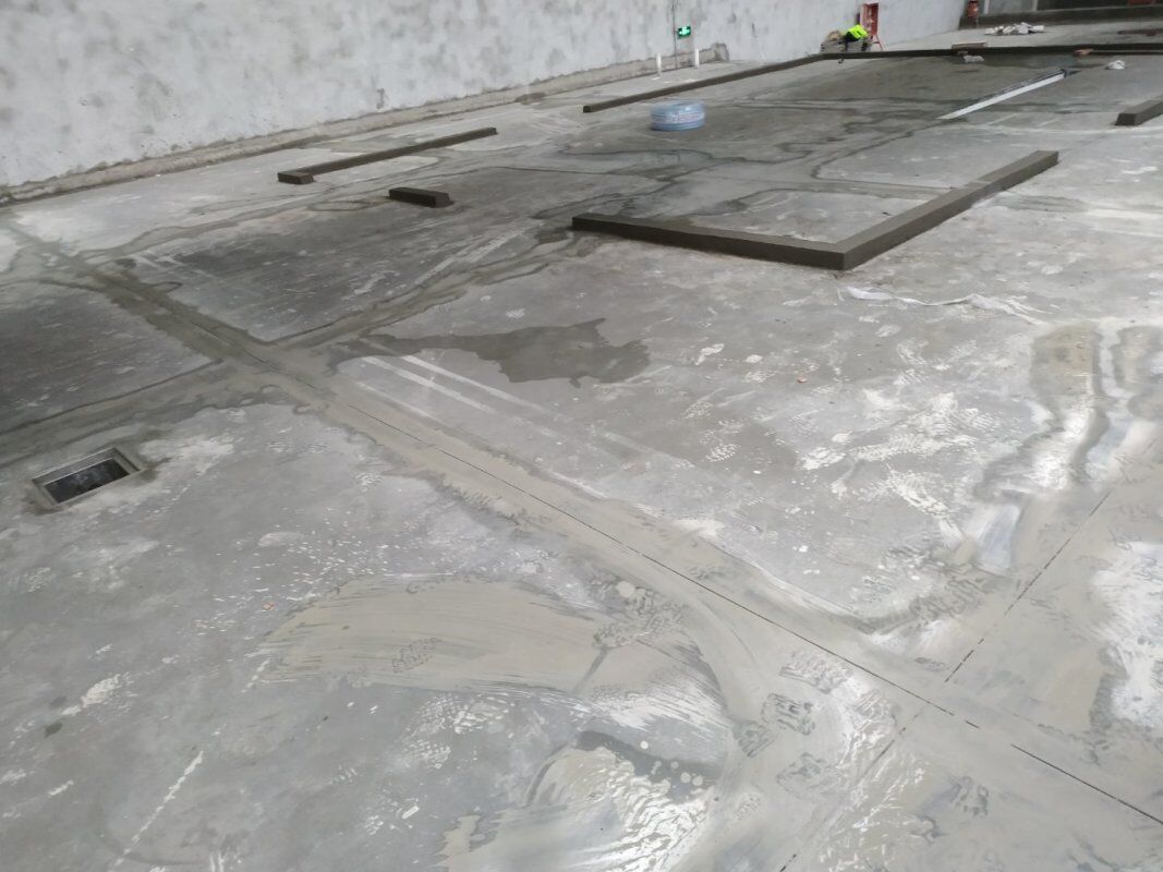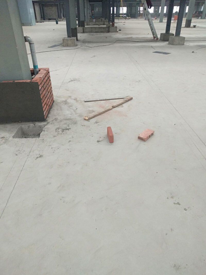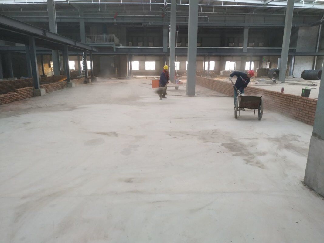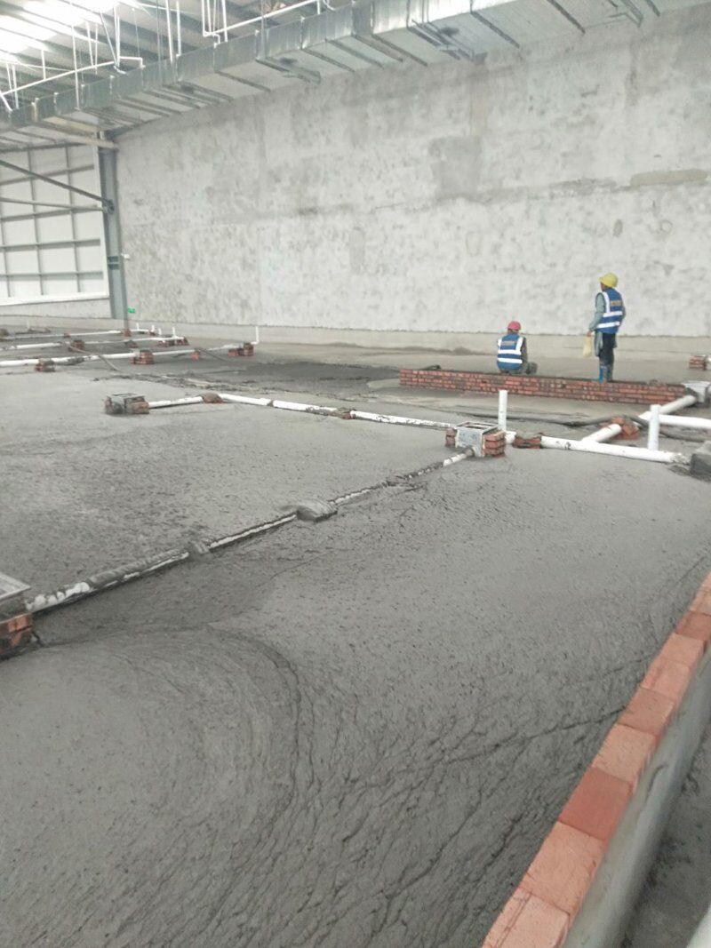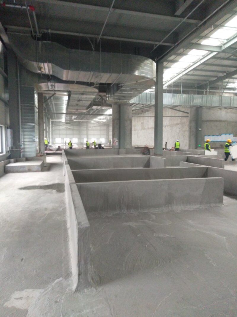 四川吉百興食品有限公司中央廚房施工現(xiàn)場,地坪灑水,放線