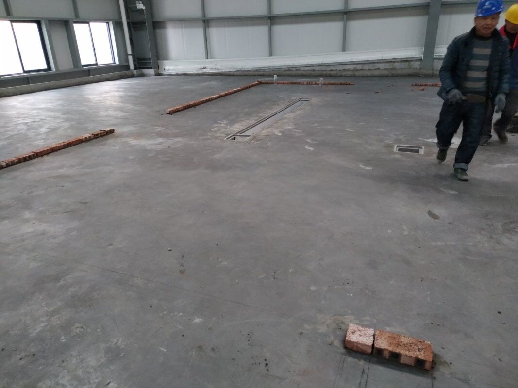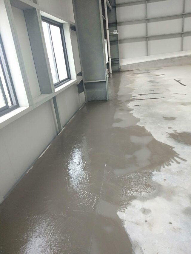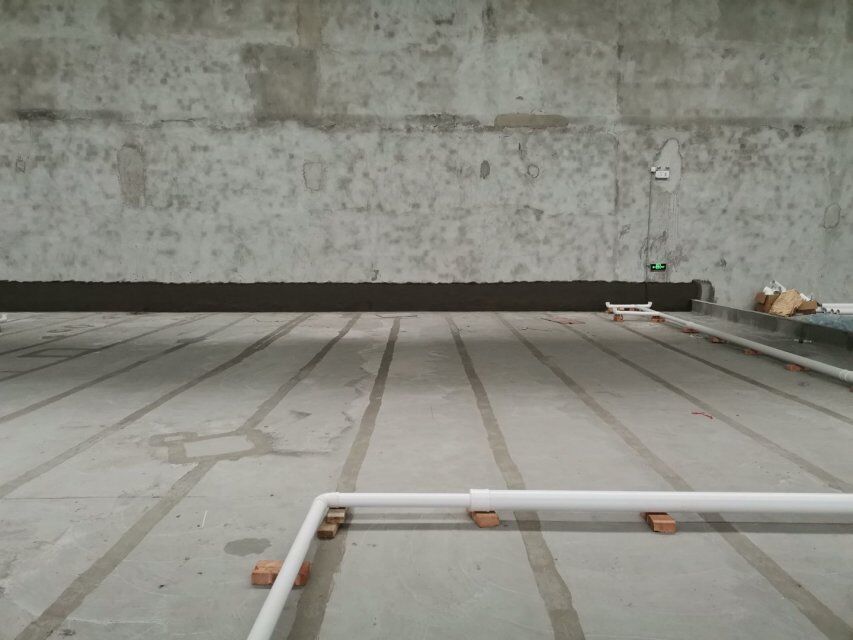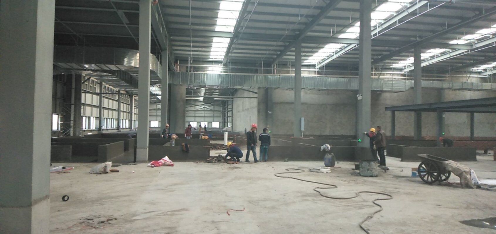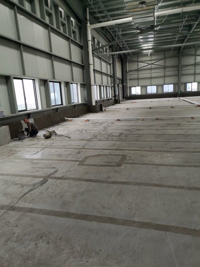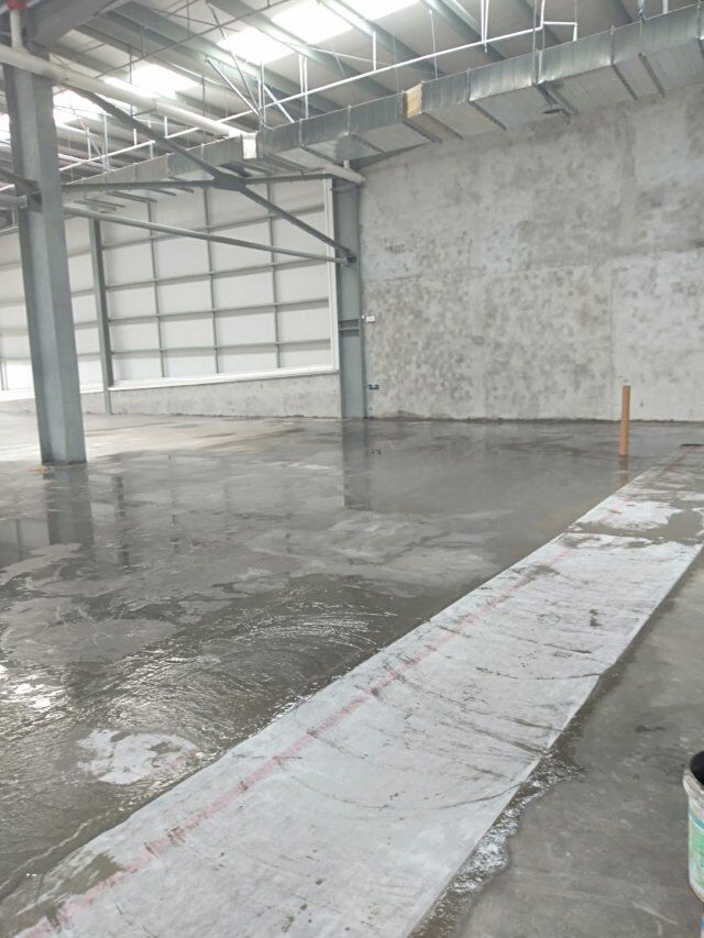 四川吉百興食品有限公司中央廚房施工現(xiàn)場,地坪灑水,放線
