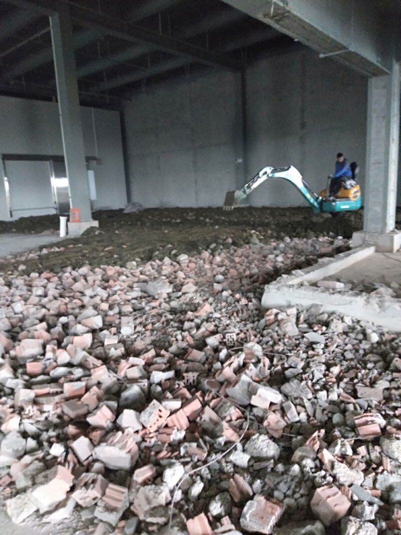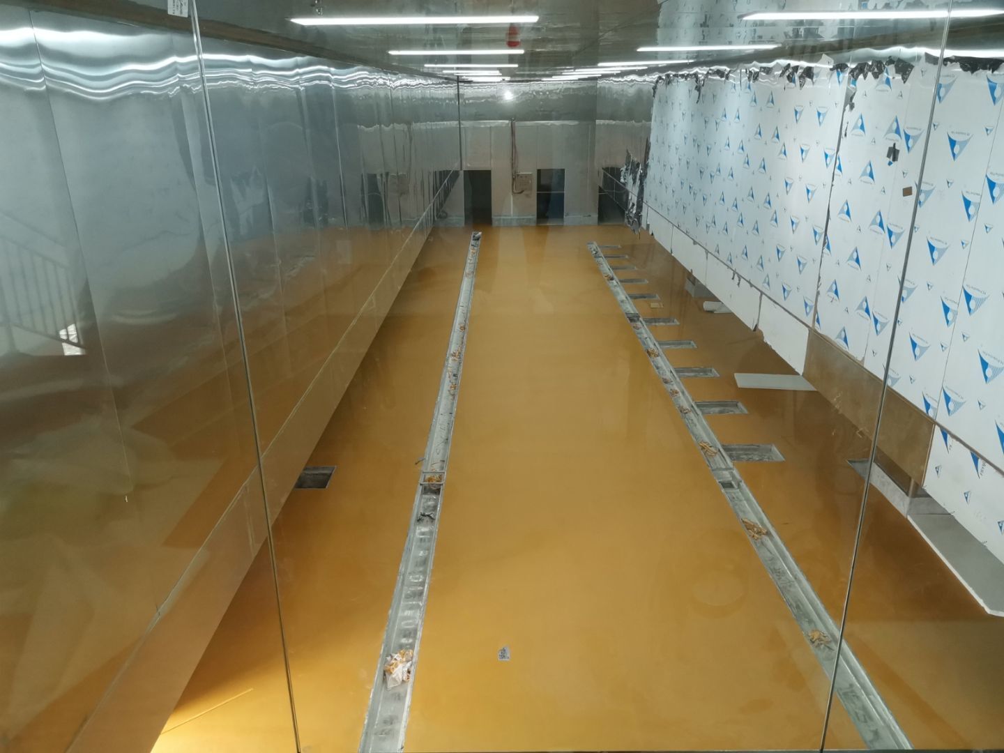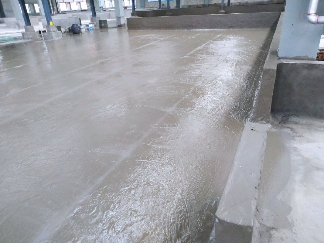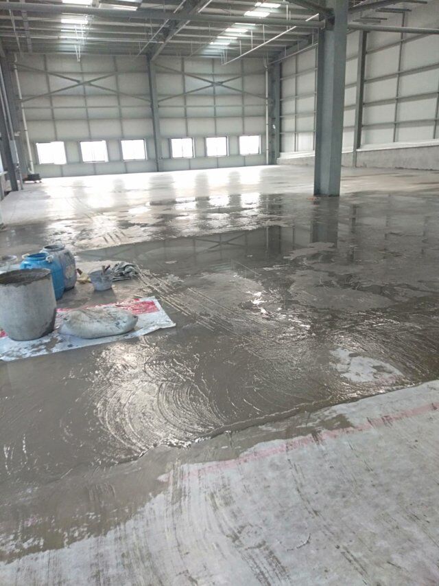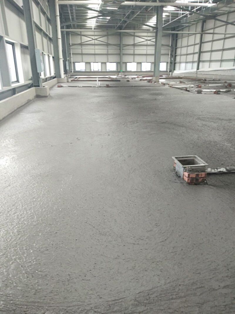 四川吉百興食品有限公司中央廚房施工現(xiàn)場,地坪灑水,放線