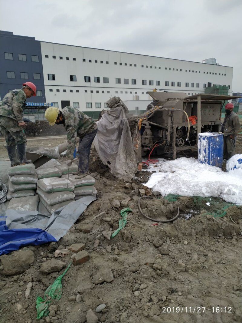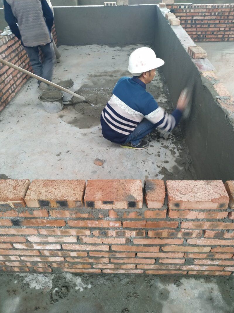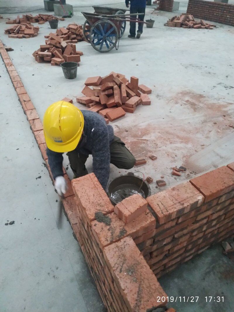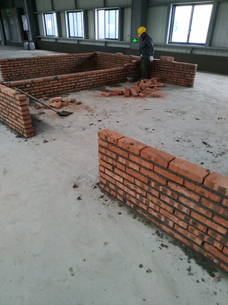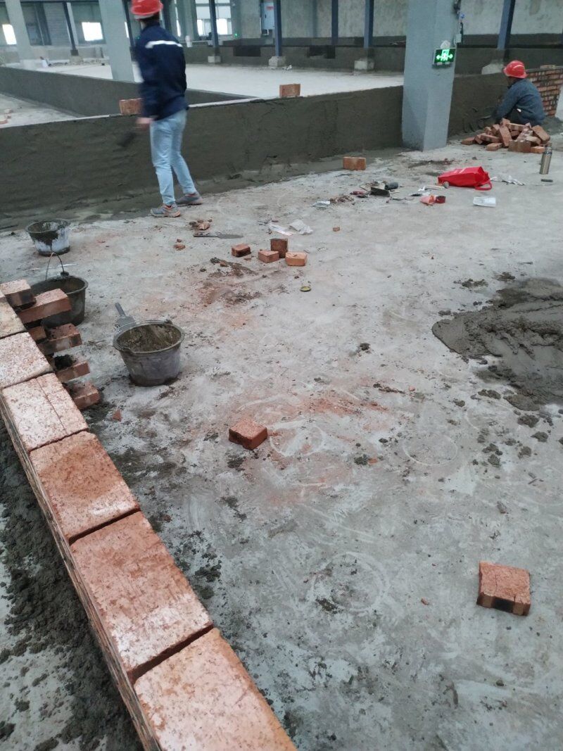 車間擋水墻砌磚施工,發(fā)泡混泥土開始施工