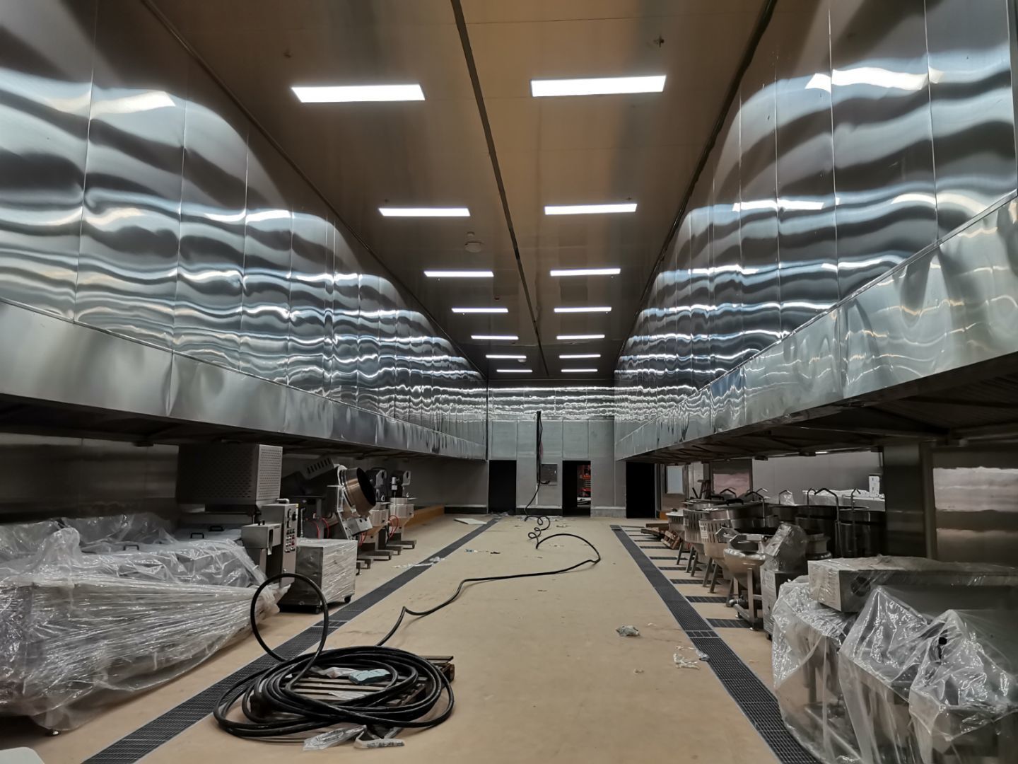 四川吉百興食品有限公司中央廚房裝修接近尾聲,現(xiàn)場開始收拾細(xì)節(jié),搞衛(wèi)生