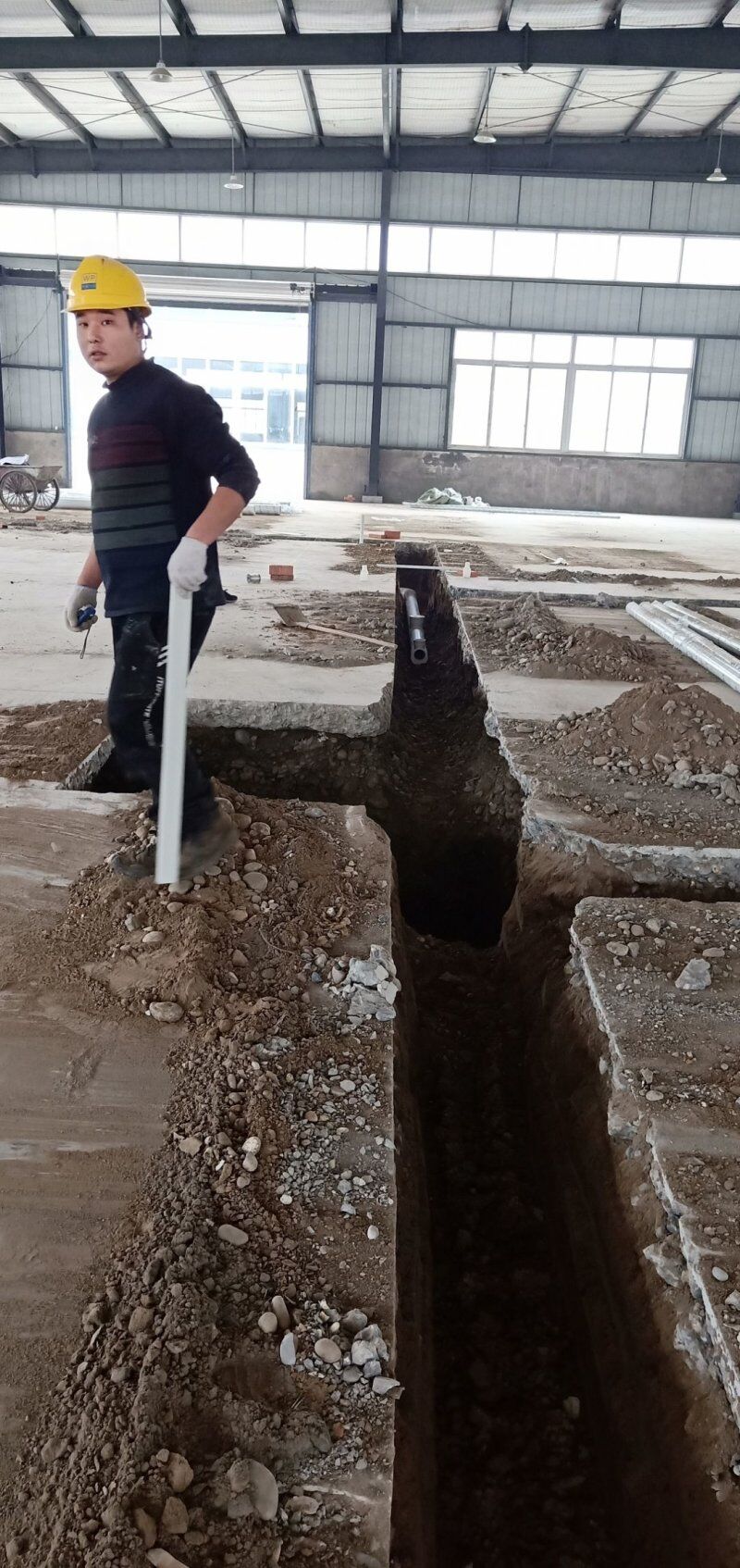 車間排水溝挖溝完成,排水管安裝
