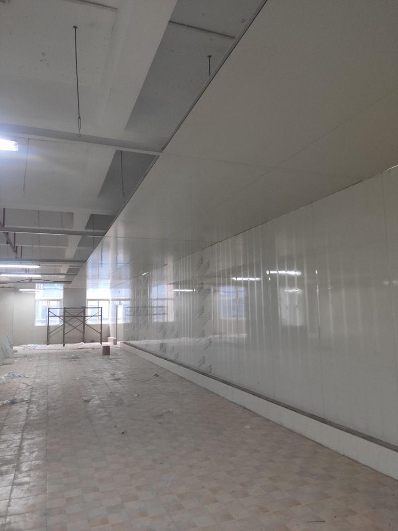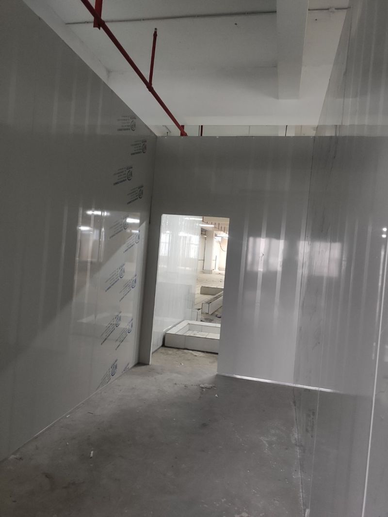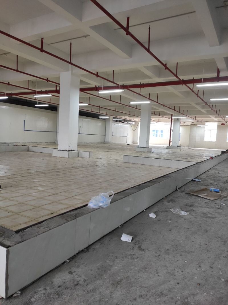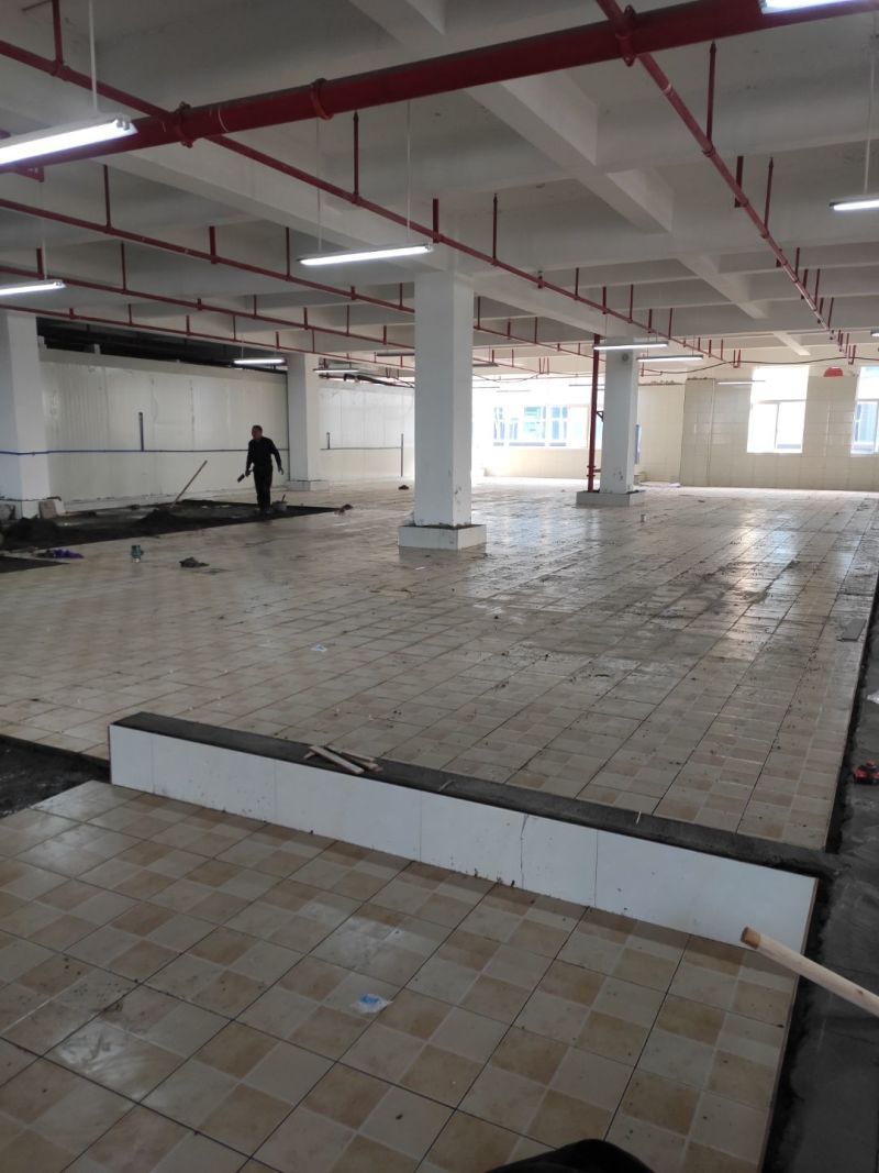 地磚鋪設(shè)完成一半,清洗間墻磚開始施工,車間衛(wèi)生打掃完成