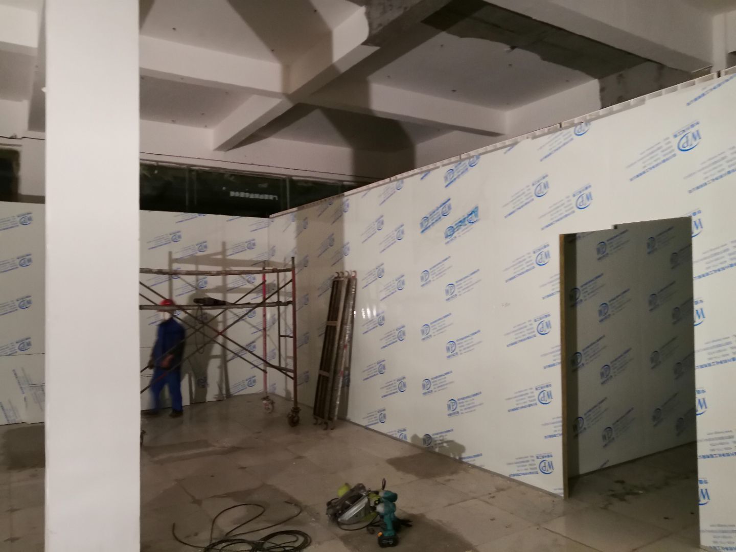 1,吊筋安裝全部完成, 2,門制作及安裝, 3,現場6s清理, 4,剩余全部彩鋼材料進場,風管及水電材料預計明日進場。
