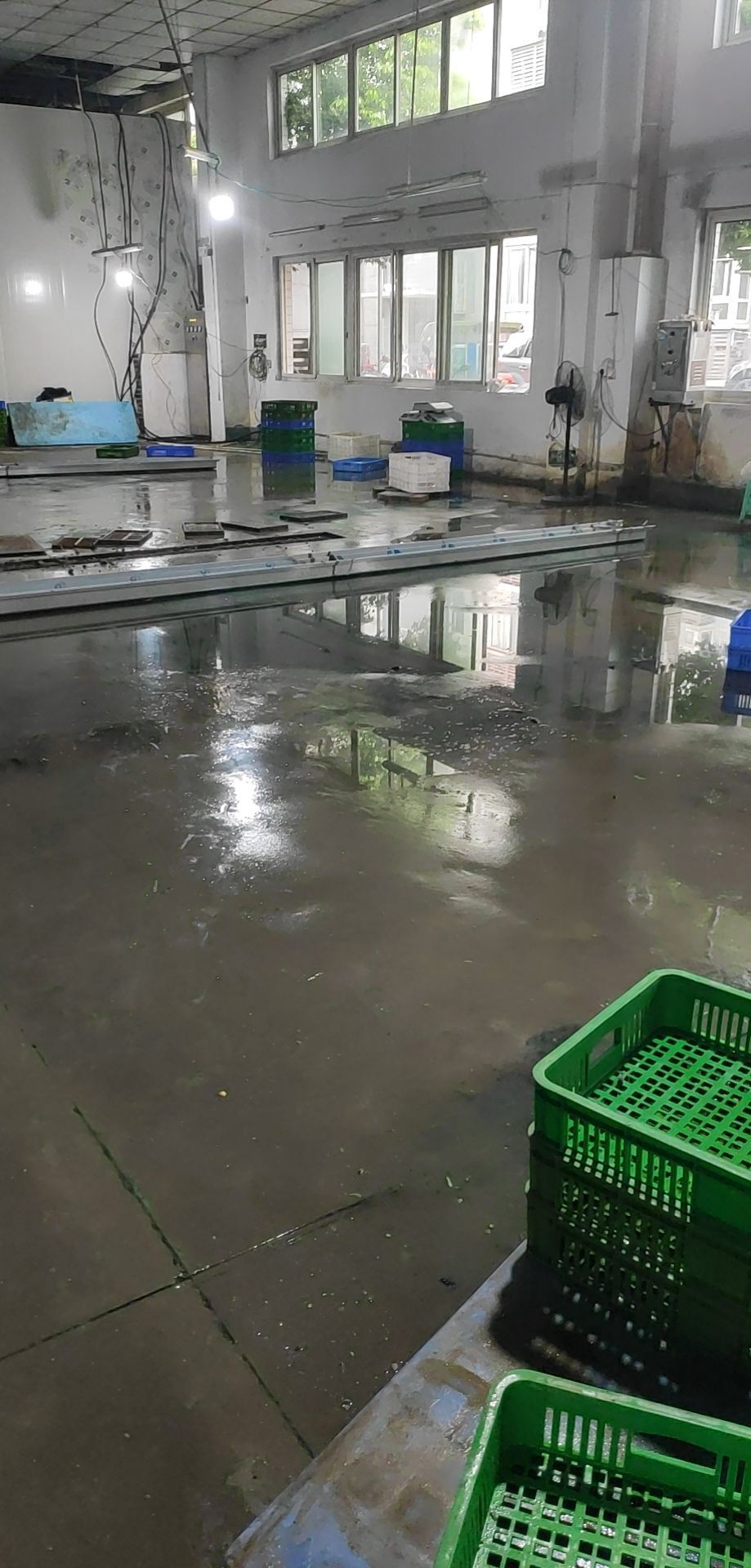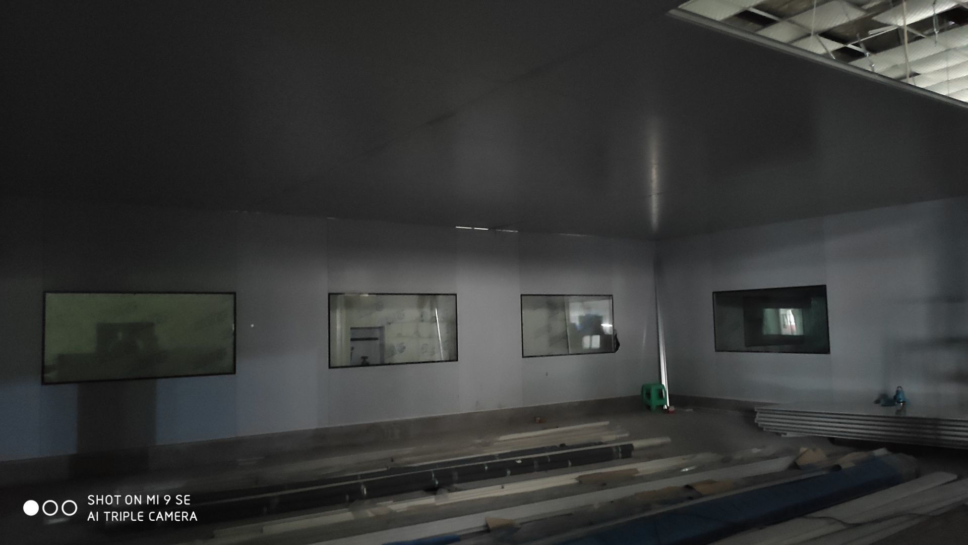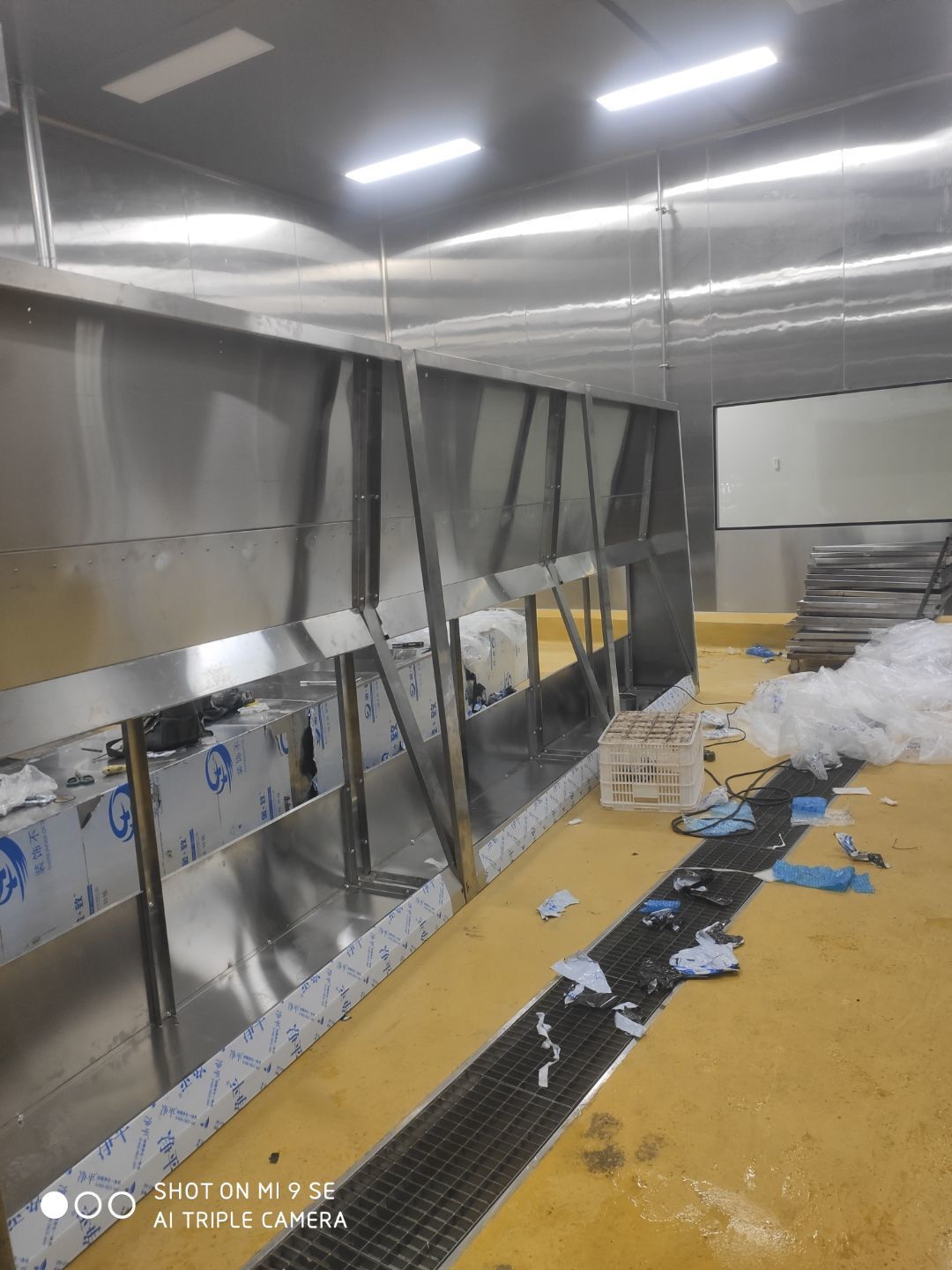 車間燈全部點亮,換氣扇開洞完成,機器設備安裝完成