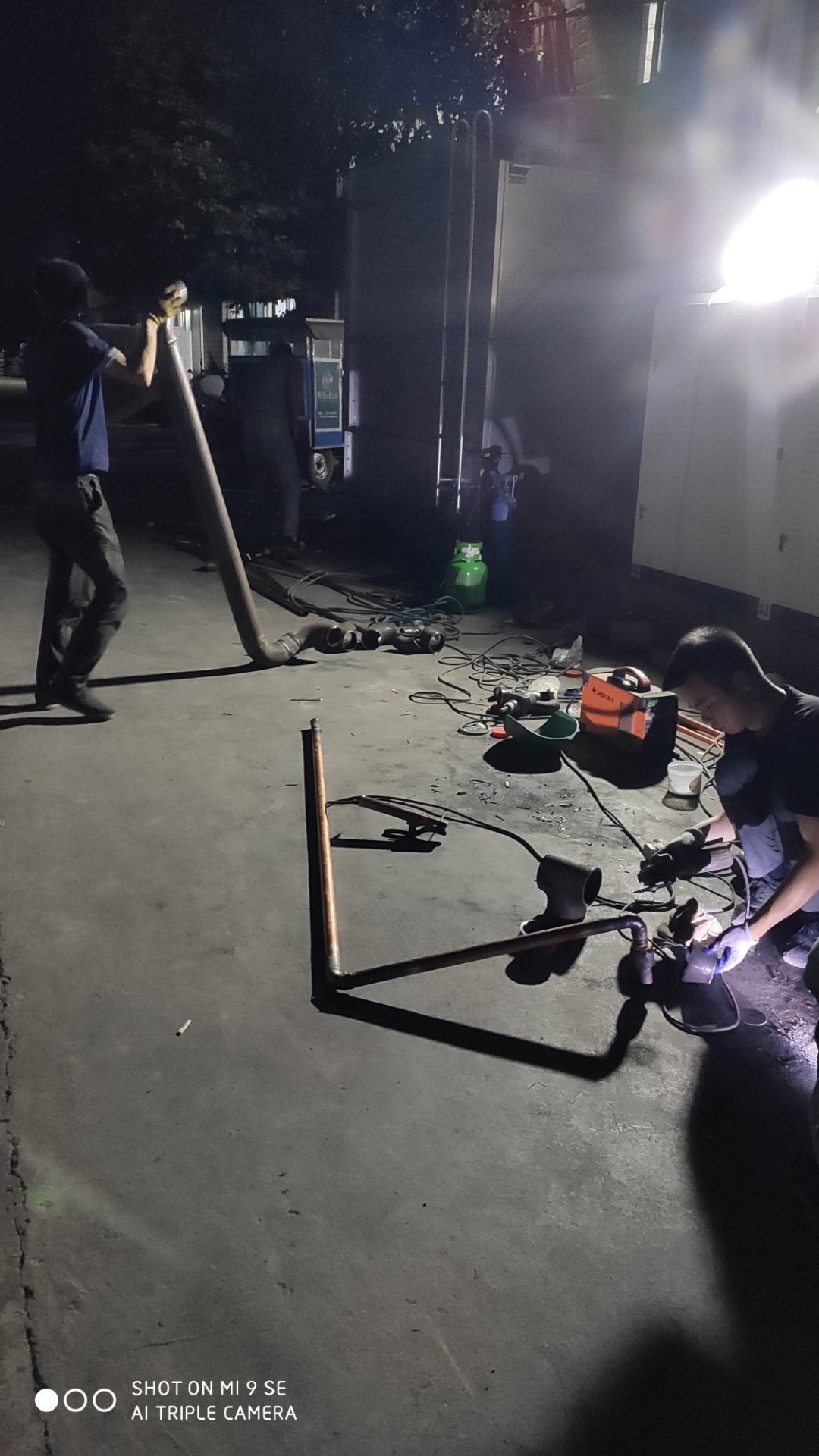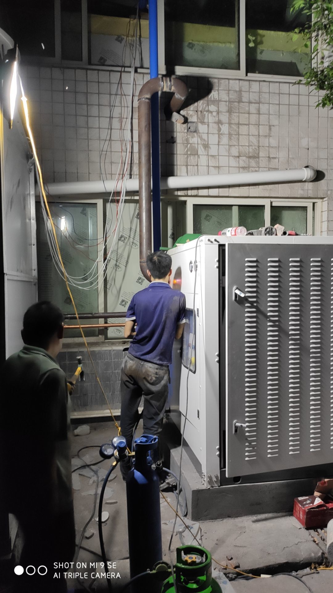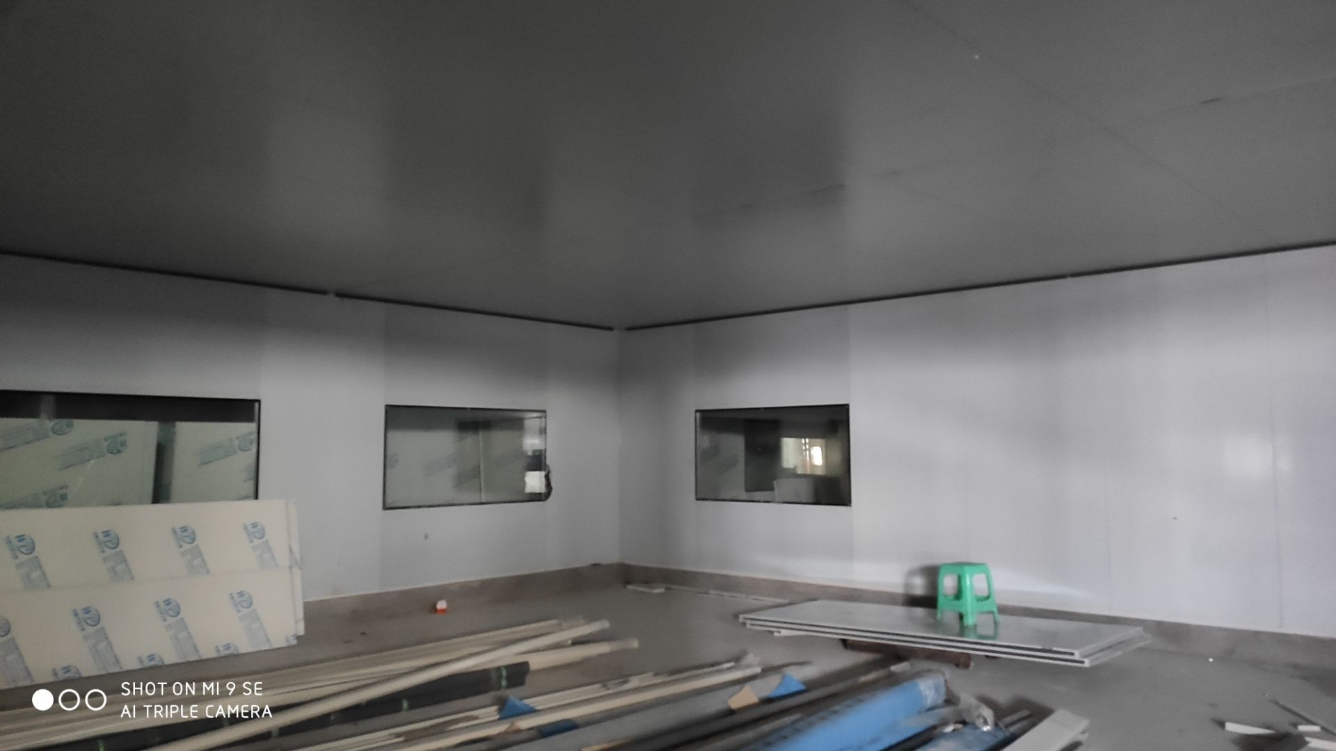 車間燈全部點亮,換氣扇開洞完成,機器設備安裝完成