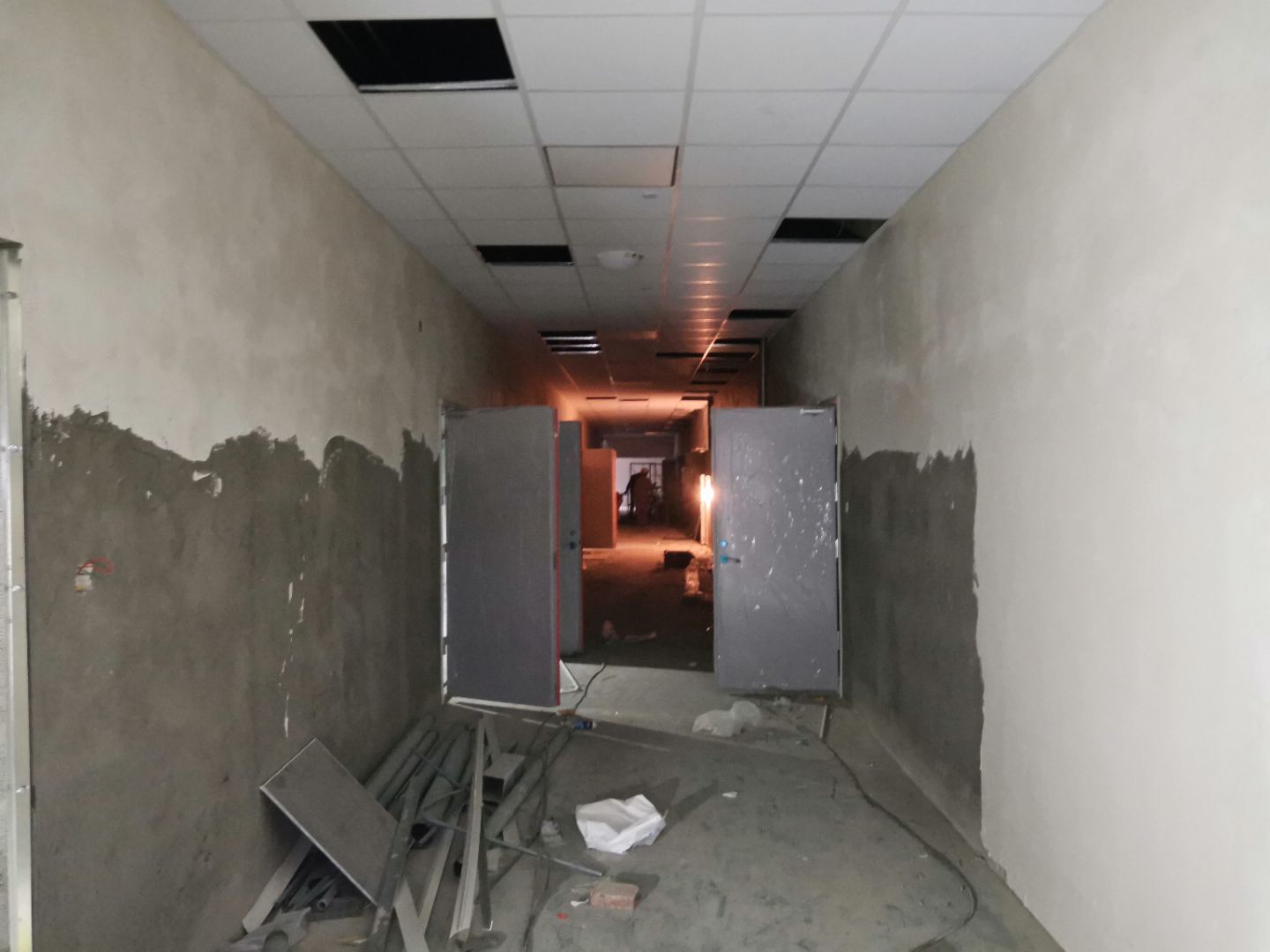 1,卷簾門門坡二次調整完成, 2,門口花池磚砌抹灰貼磚完成, 3,人員全部撤場, 4,已交工。