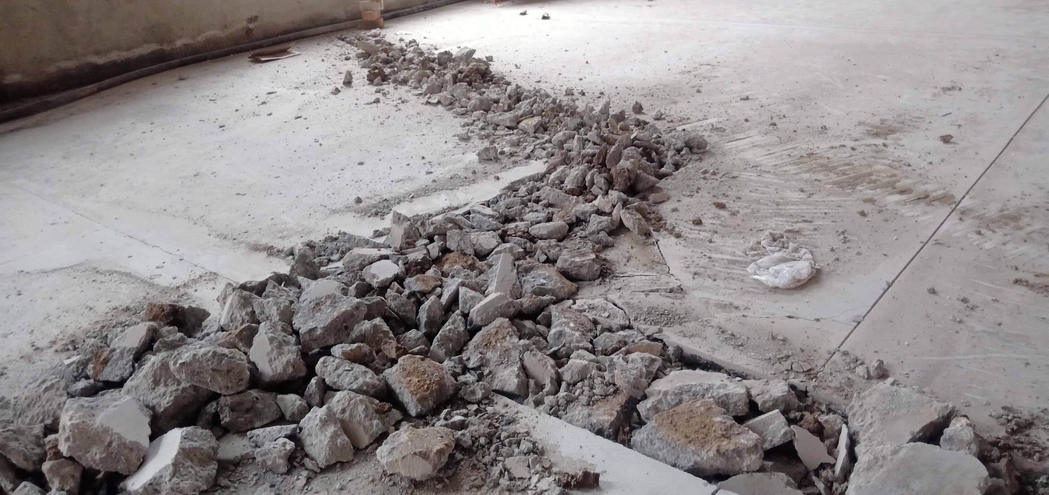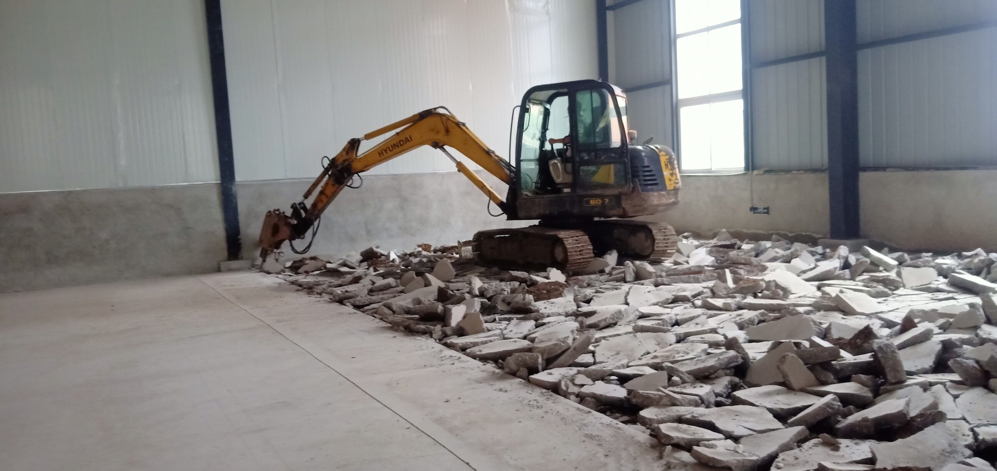 室內排水溝破碎及清挖完成,待泥水進場