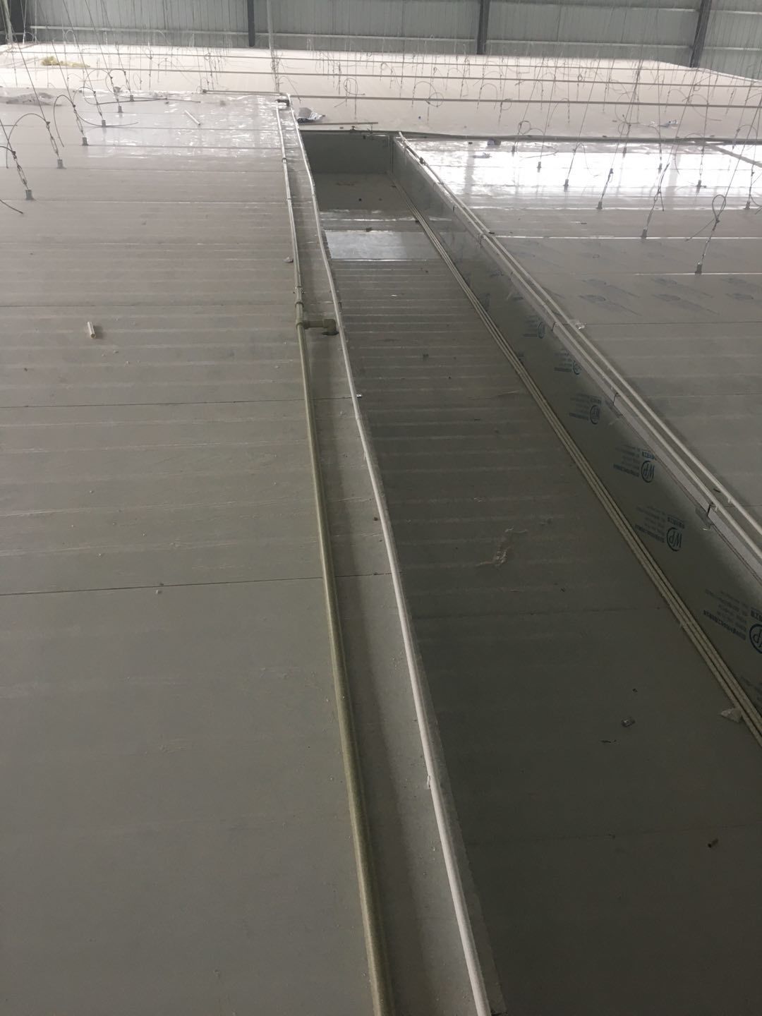 彩鋼頂板除預留外完成100%門、窗、各完成100%地坪固化處理,完成100%,排水溝環氧完成30%圓狐及底座同時完成95水,電、完成95%
