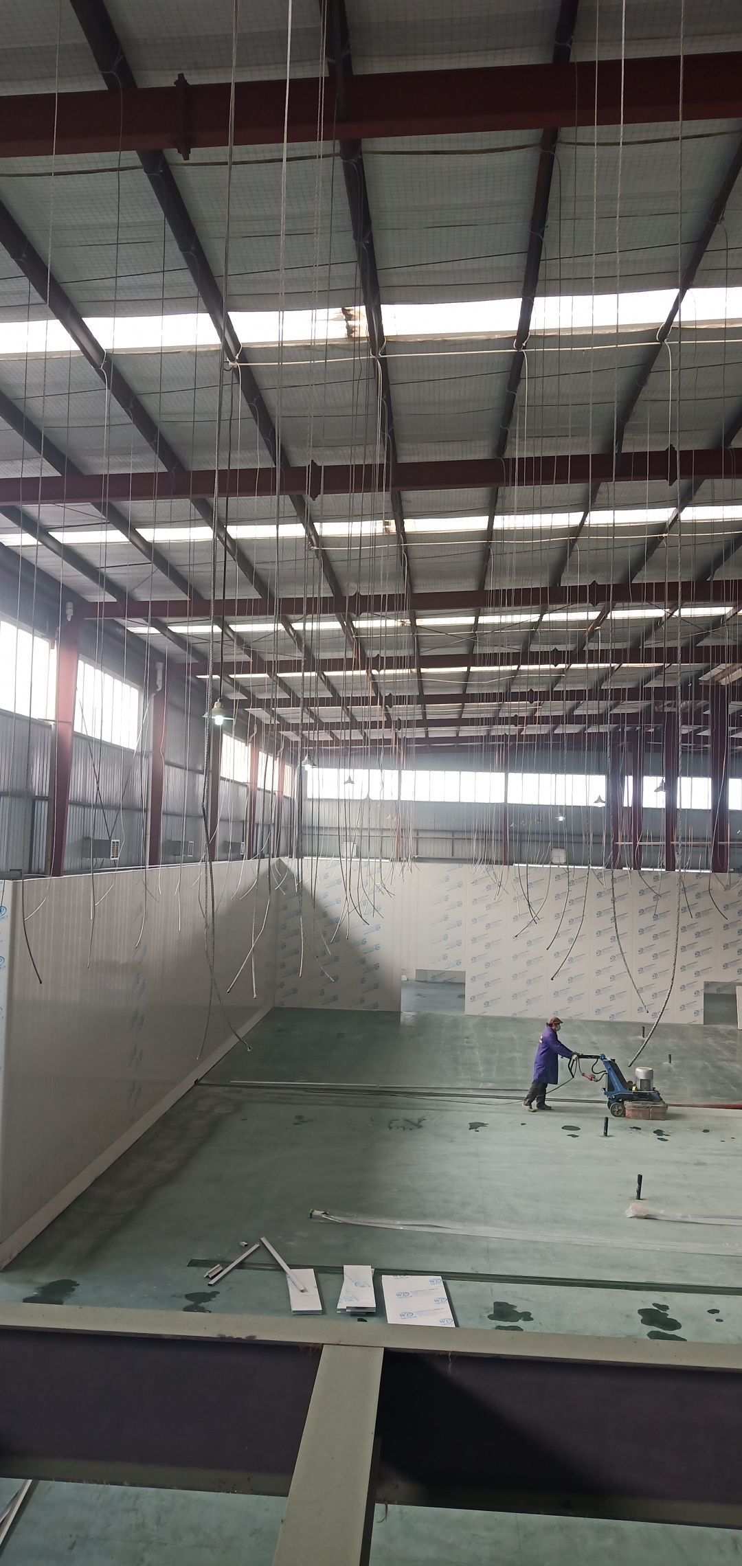 彩鋼墻板完成40%,鋼絲繩完成100%,固化地坪完成60%,鋼結(jié)構(gòu)刷第二次面漆