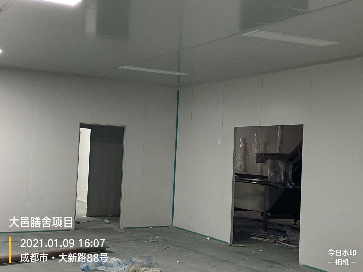 大邑膳舍食品項(xiàng)目:擋水墻貼磚完成90%,花紋鋼板、樓梯板到場(chǎng),樓梯踏步開始焊接,彩鋼墻板立板完成5%。
