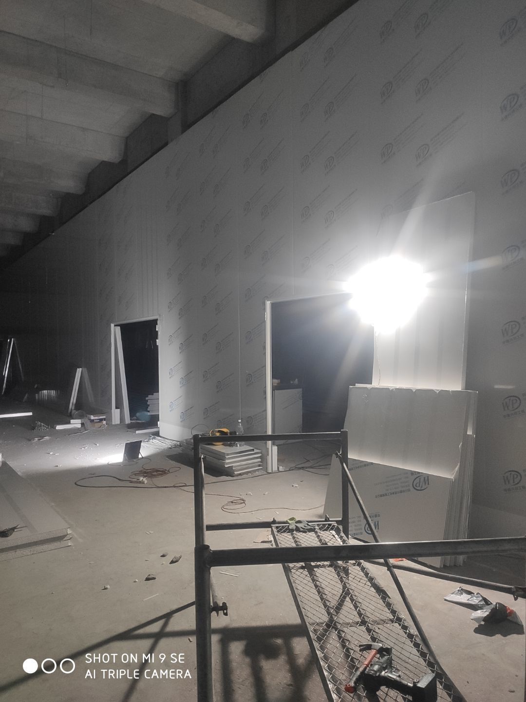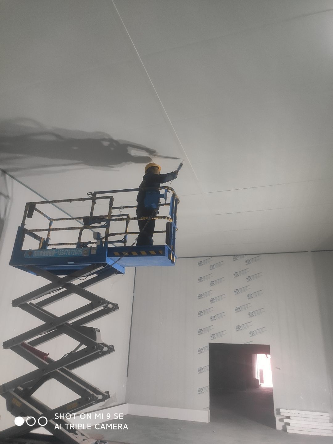 墻板頂板完成百分之九十 凍庫設備安裝完成 車間水電安裝已經開始 乳膠漆進場