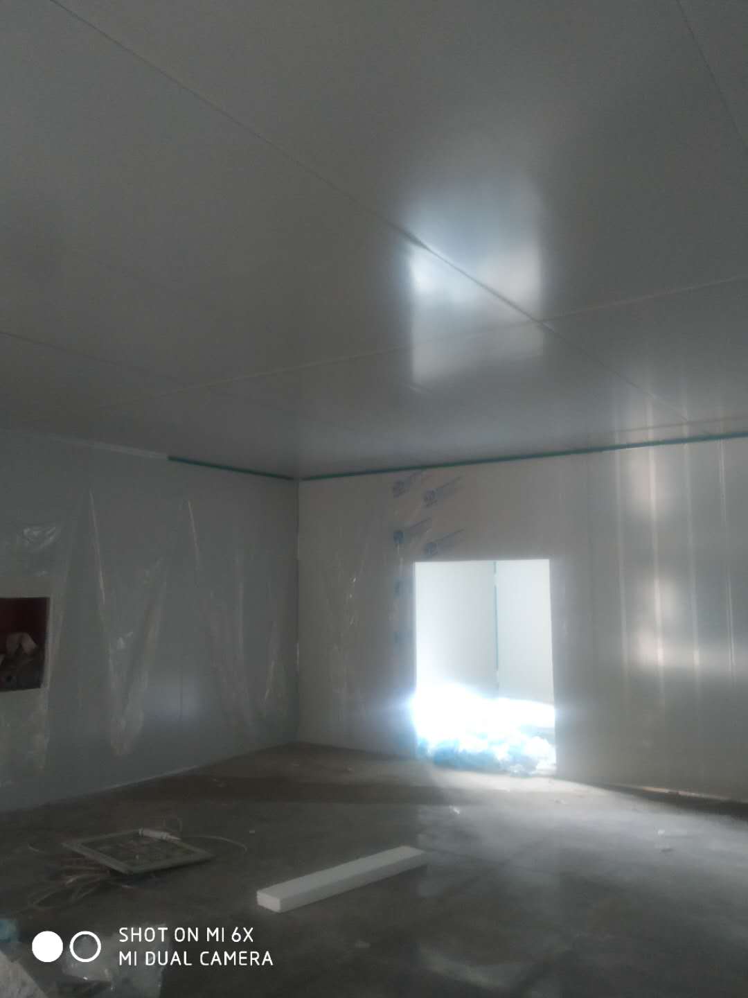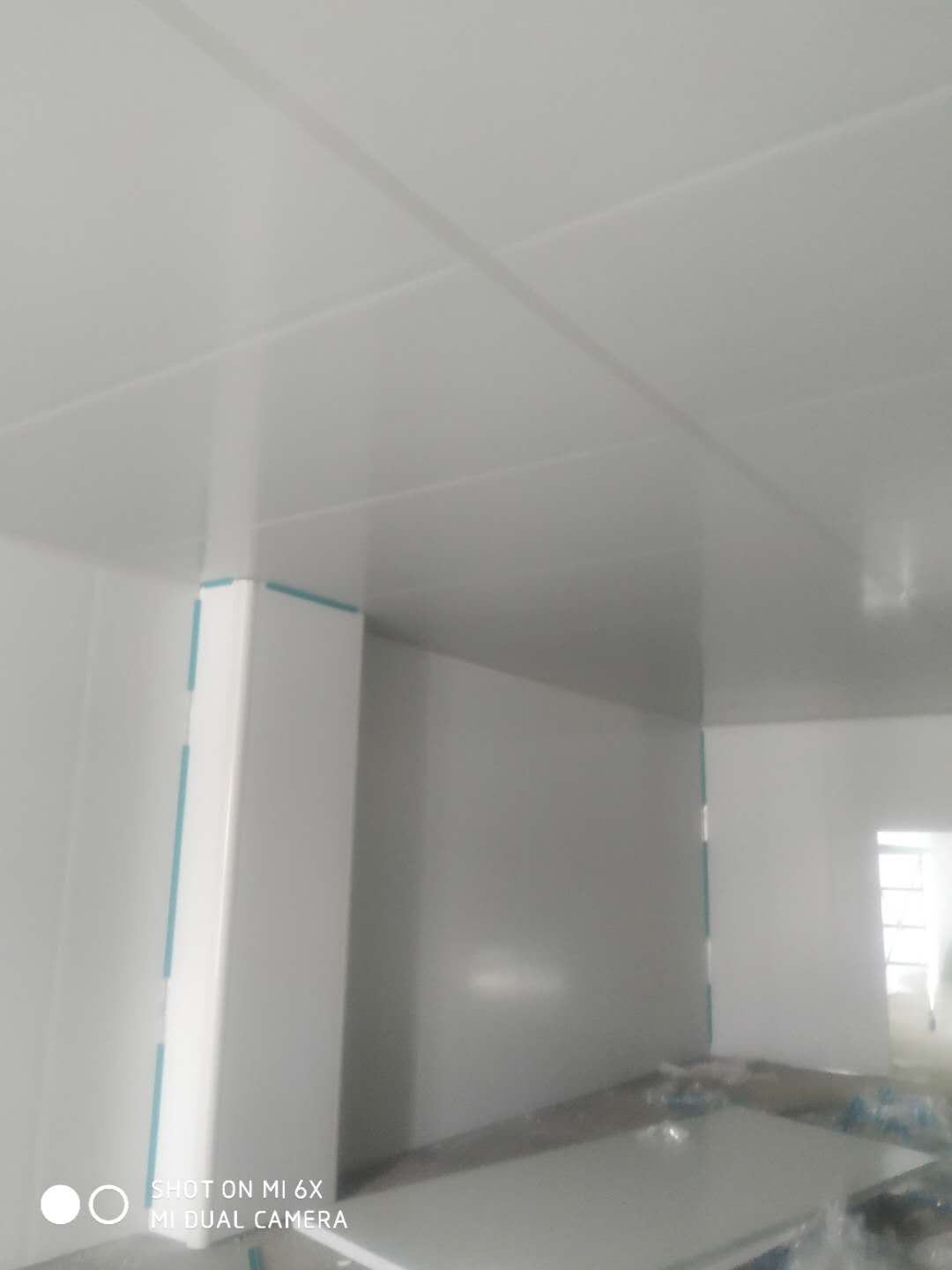 車(chē)間凈化彩鋼板施工完成,撕膜打膠