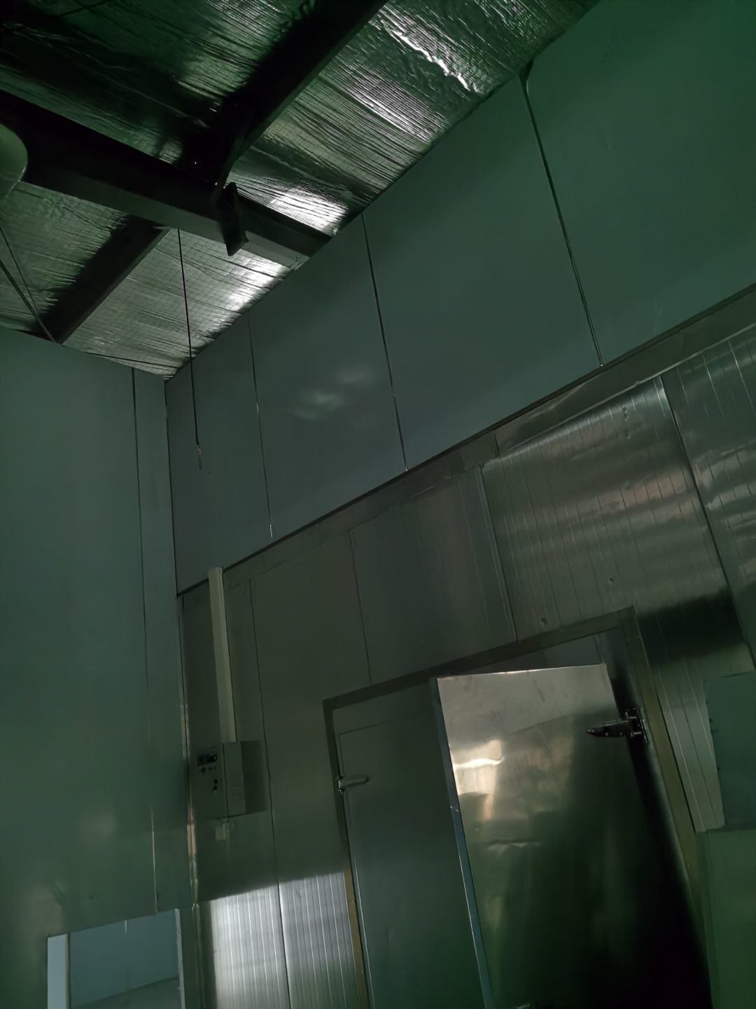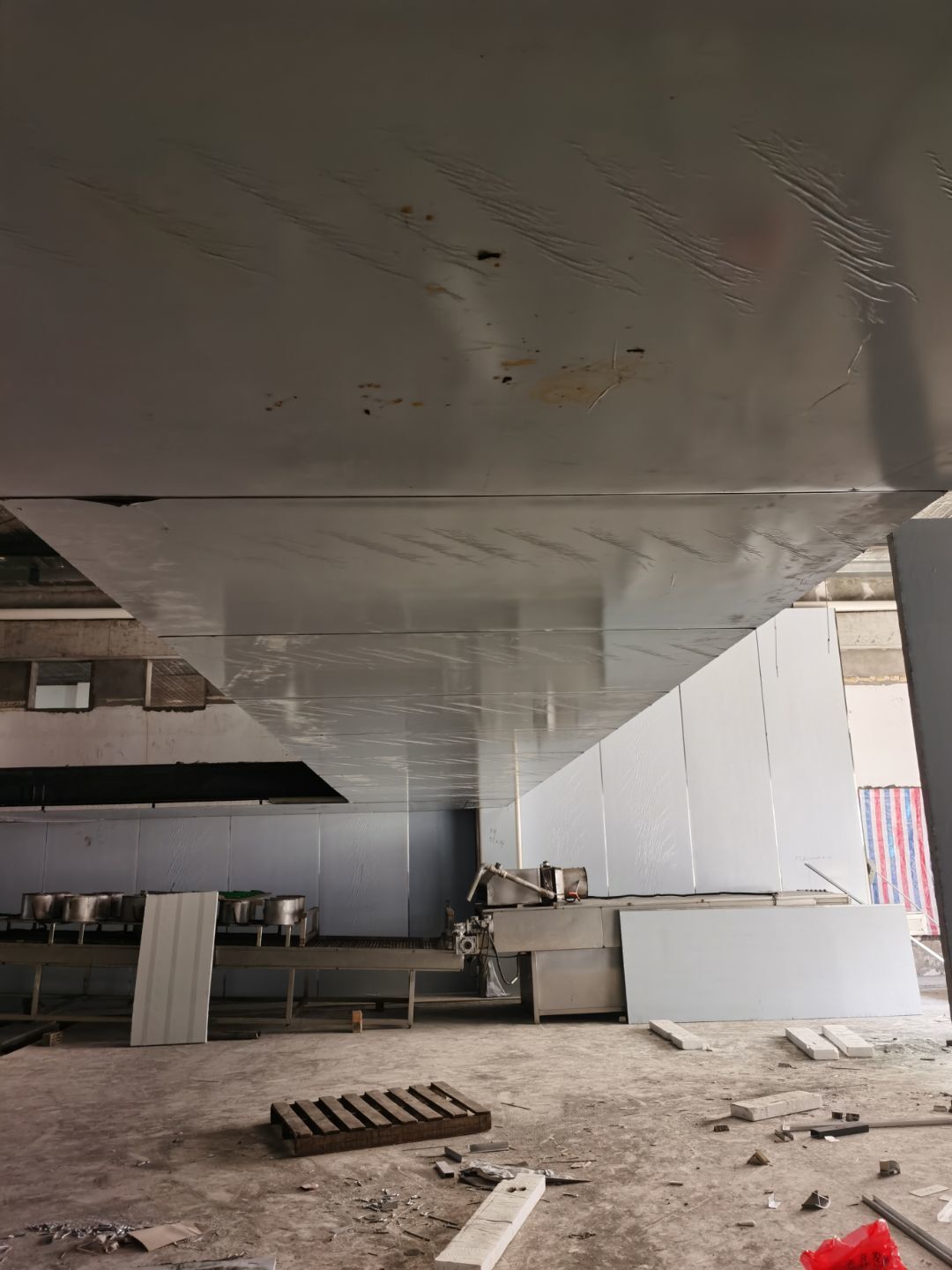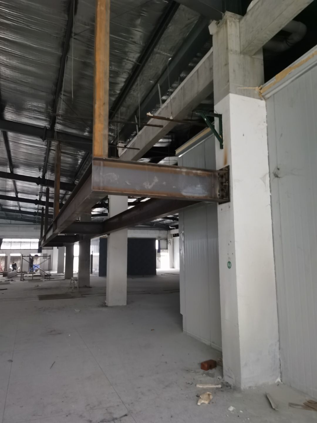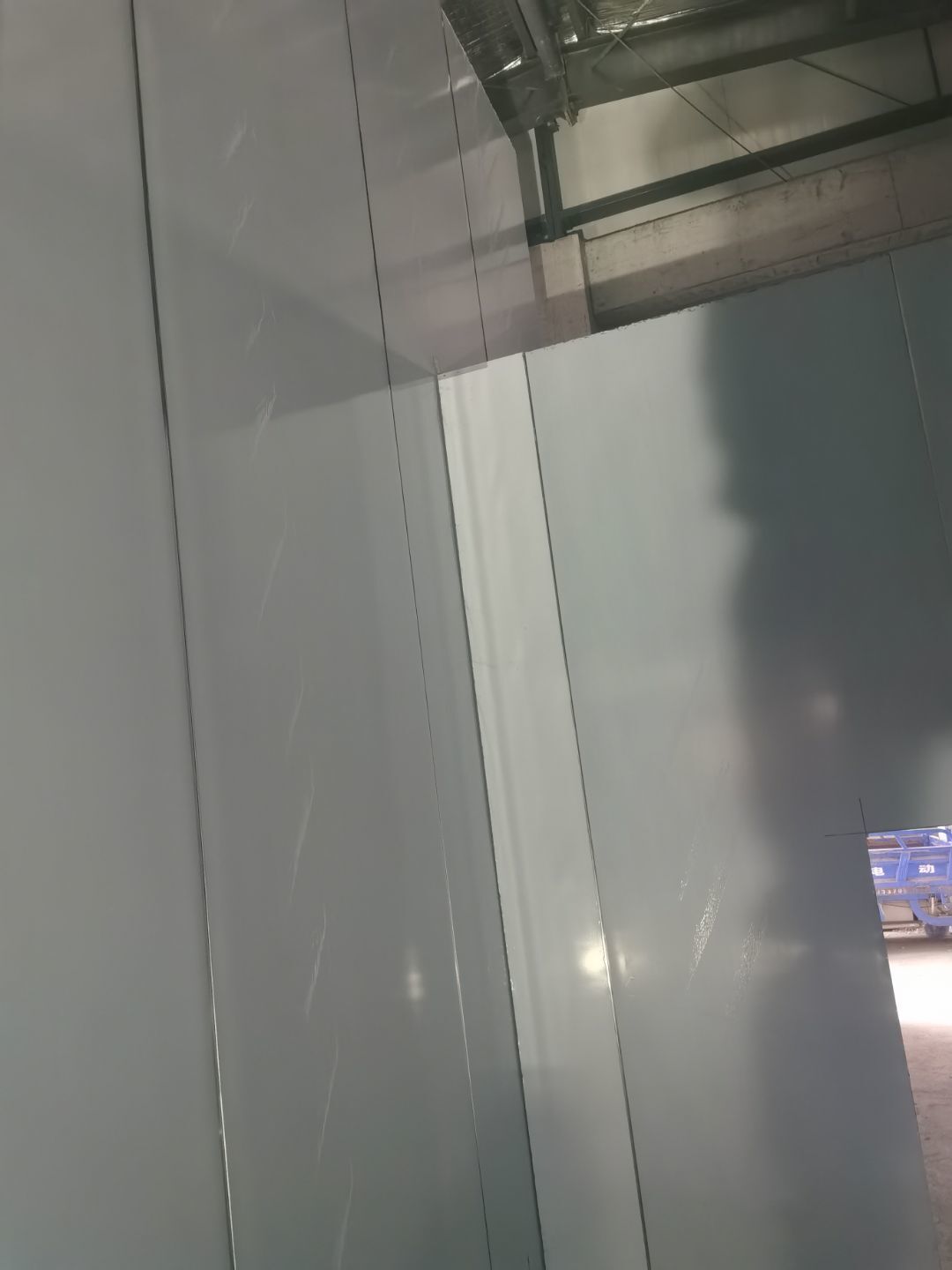 1、鋼接構完成70%;2、凍庫完成100%;3、彩鋼板開始立墻板
