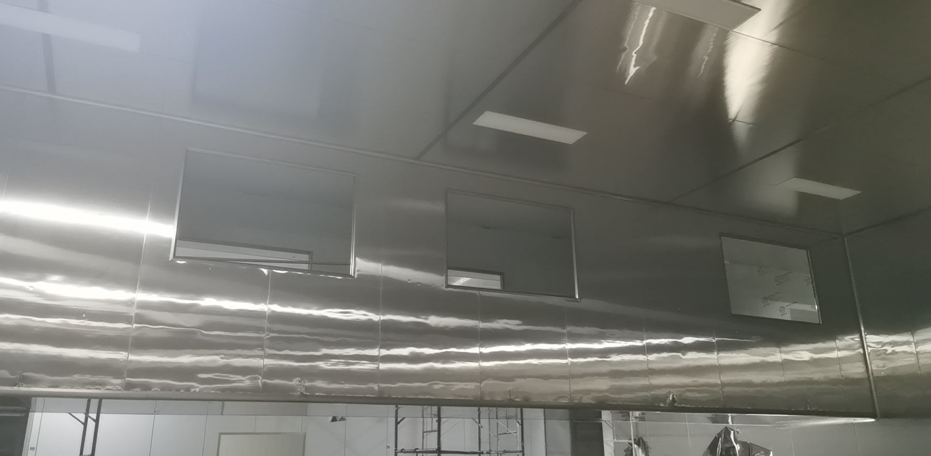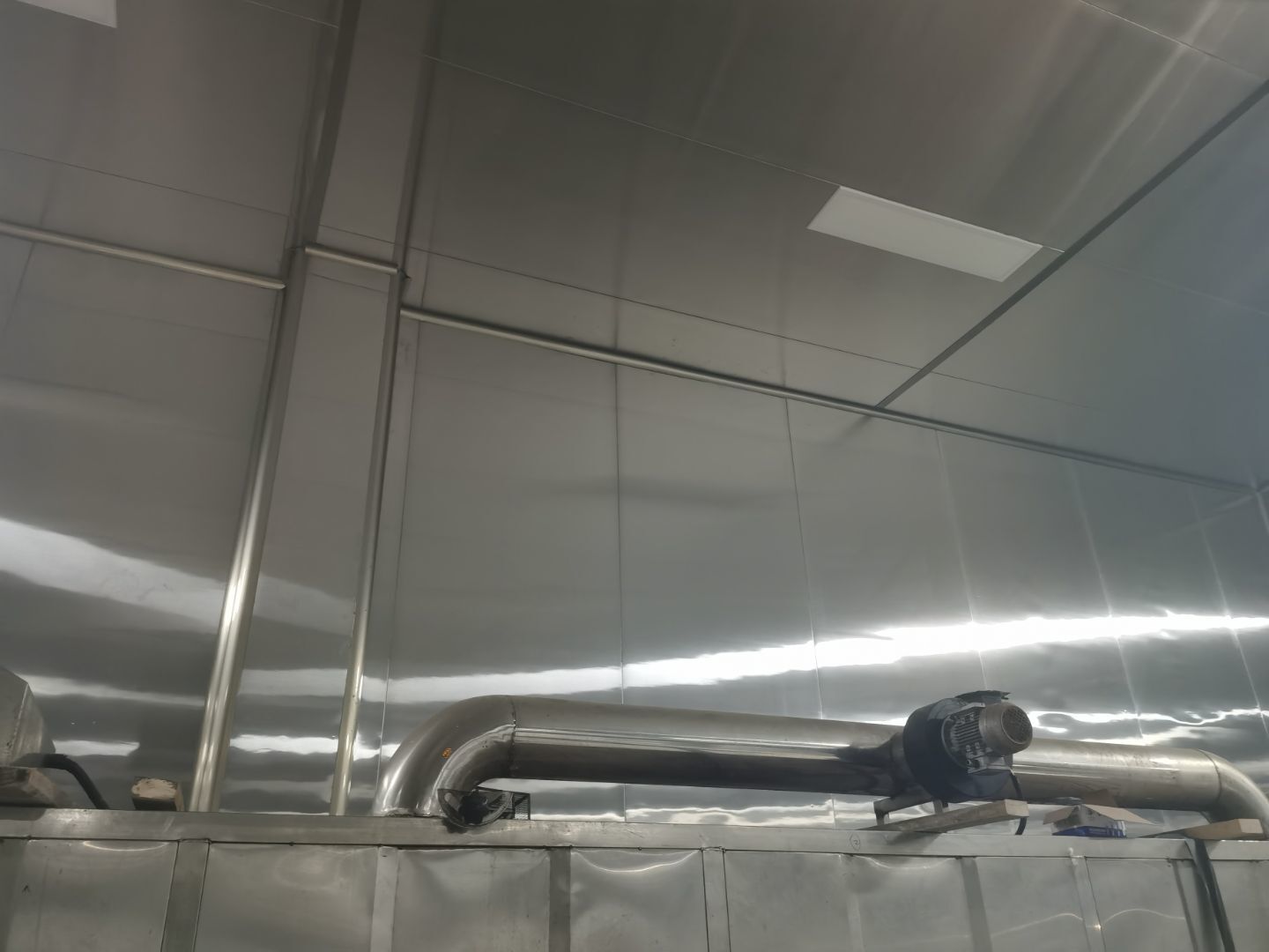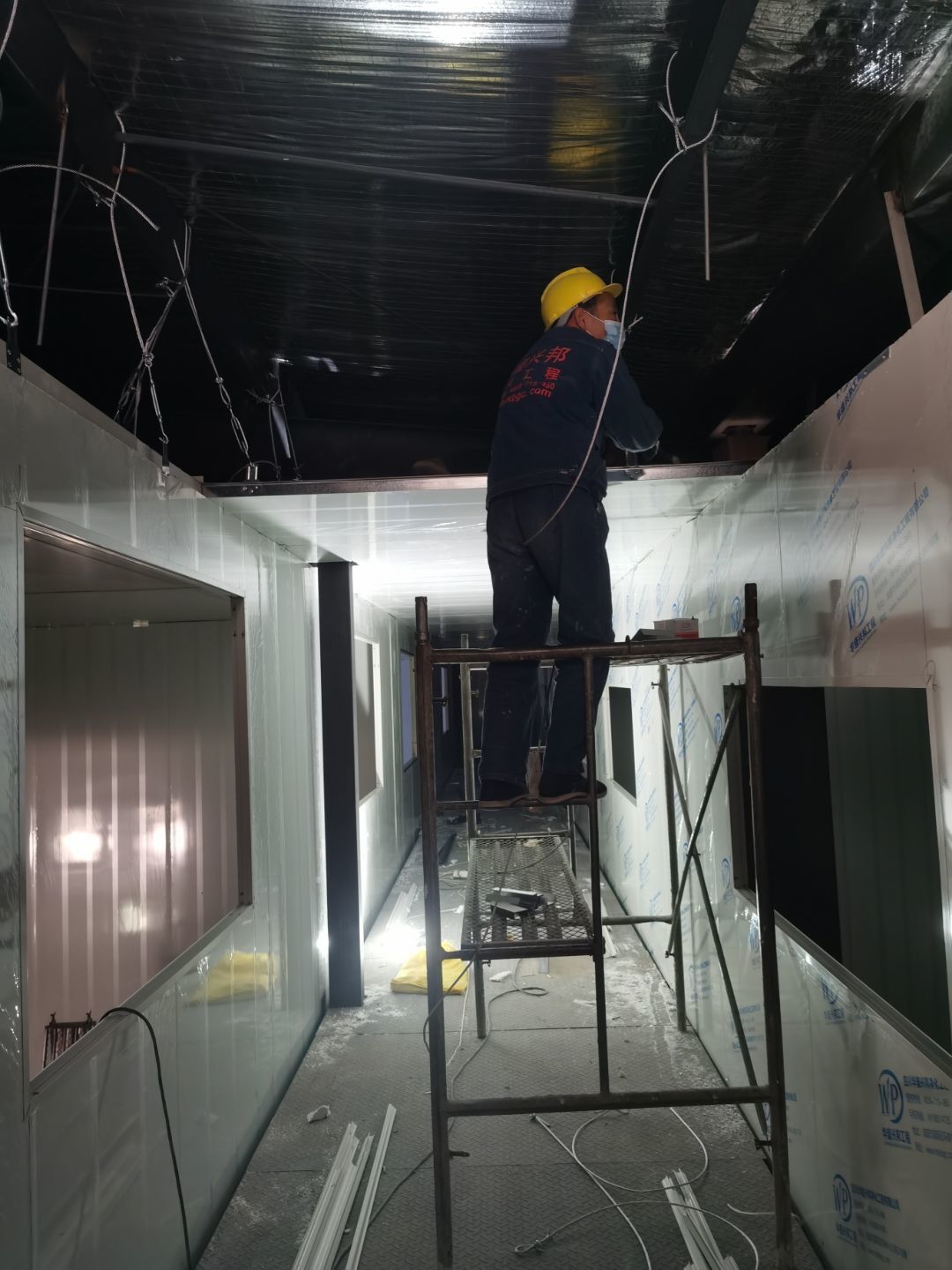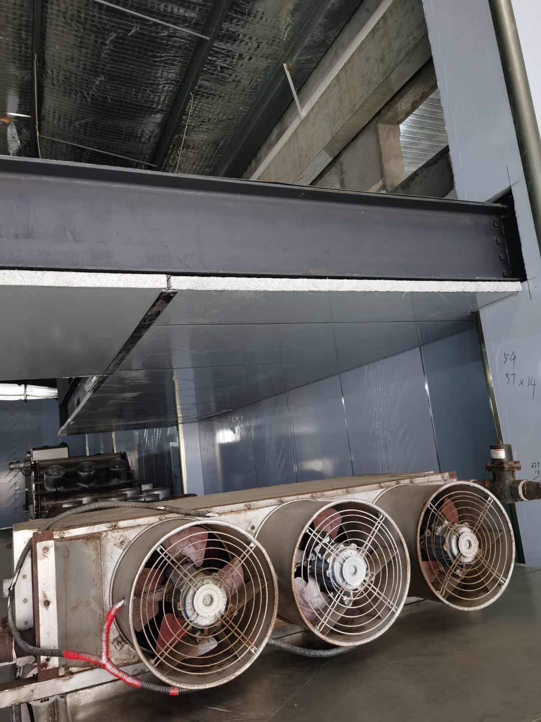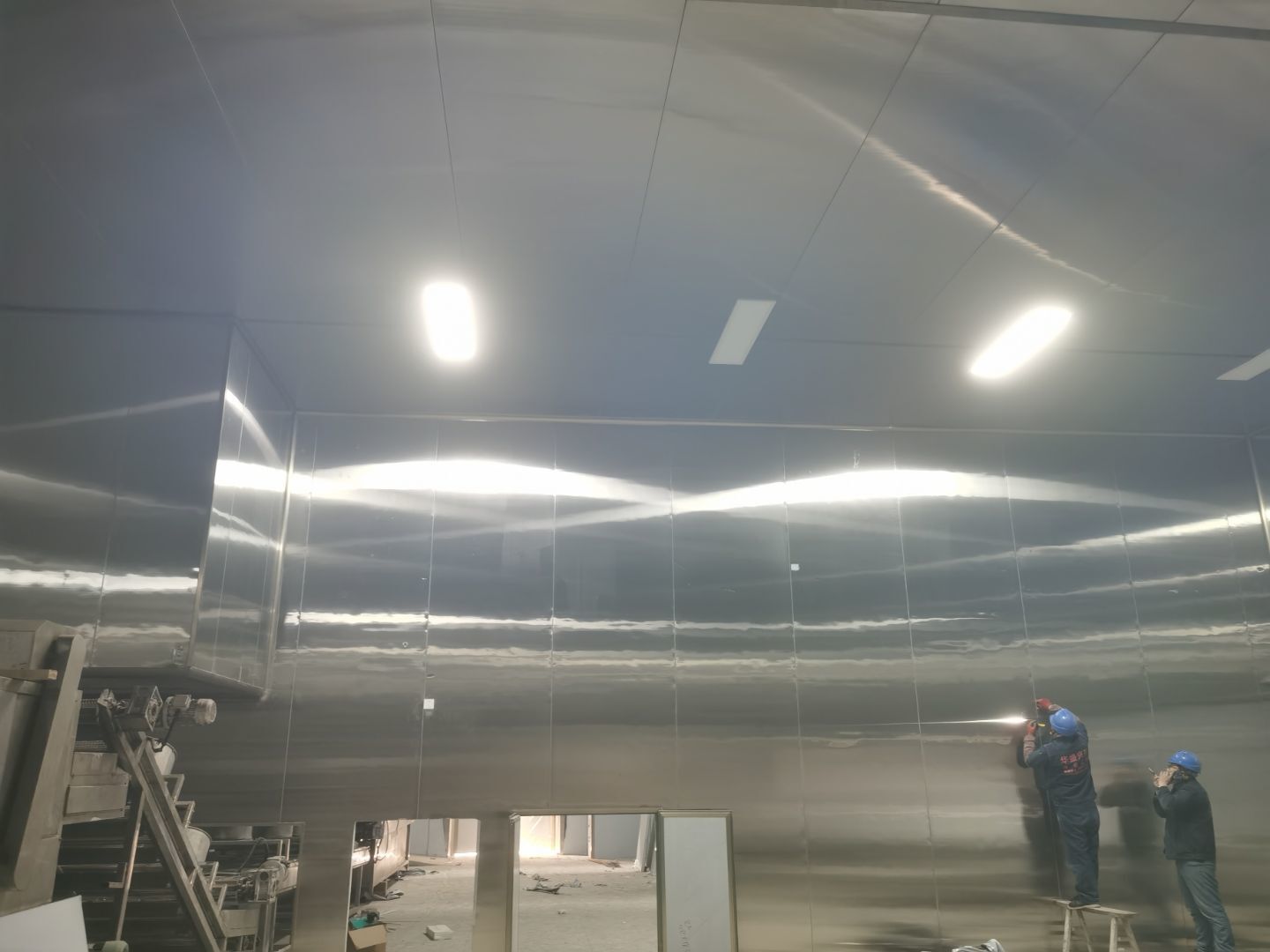 1、鋼接構完成70%;2、凍庫完成100%;3、彩鋼板開始立墻板