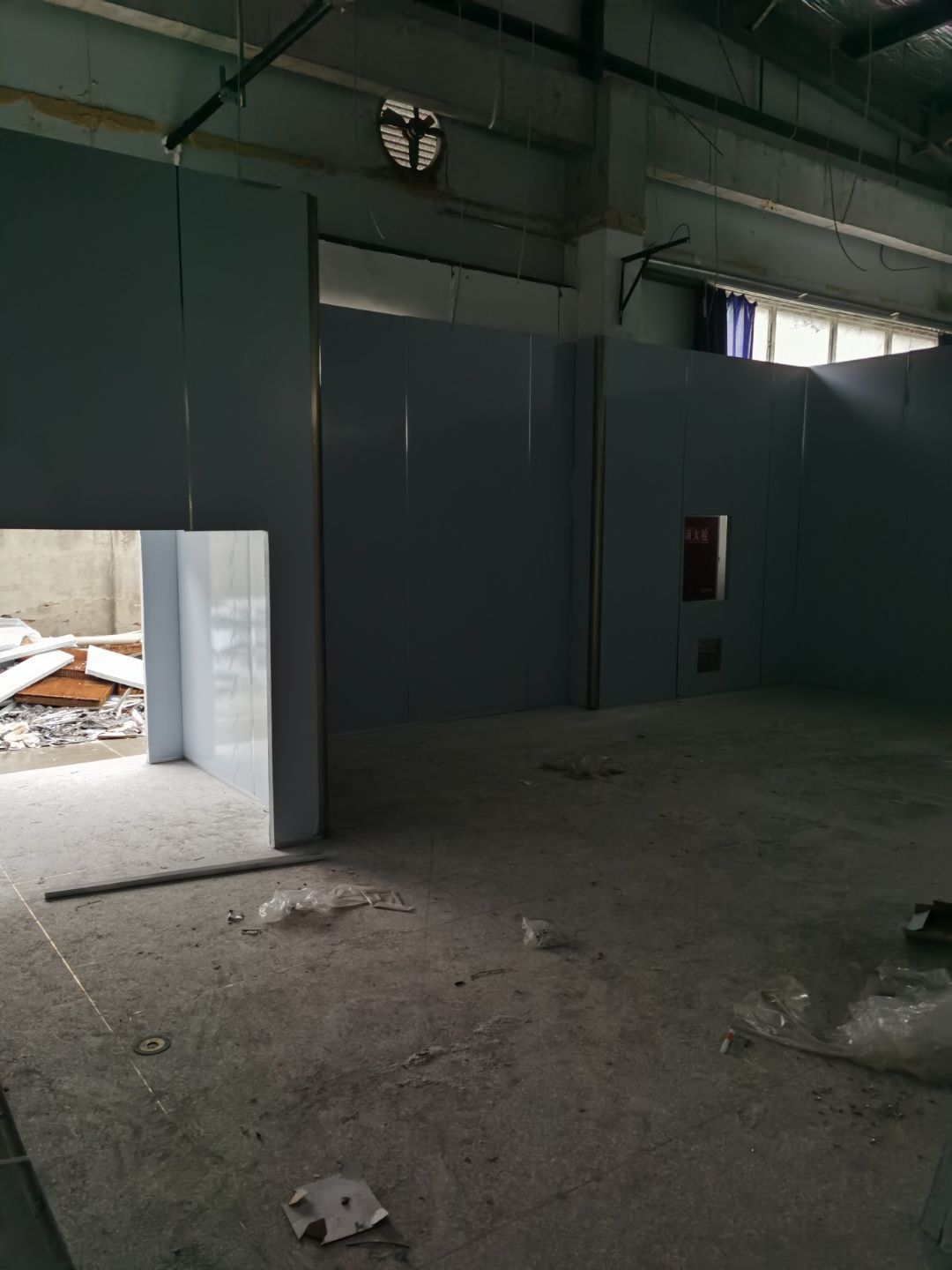 ①鋼接構完成100%②凍庫完成100%③彩鋼墻板完成100%,④水丶電完成10%、建渣清理
