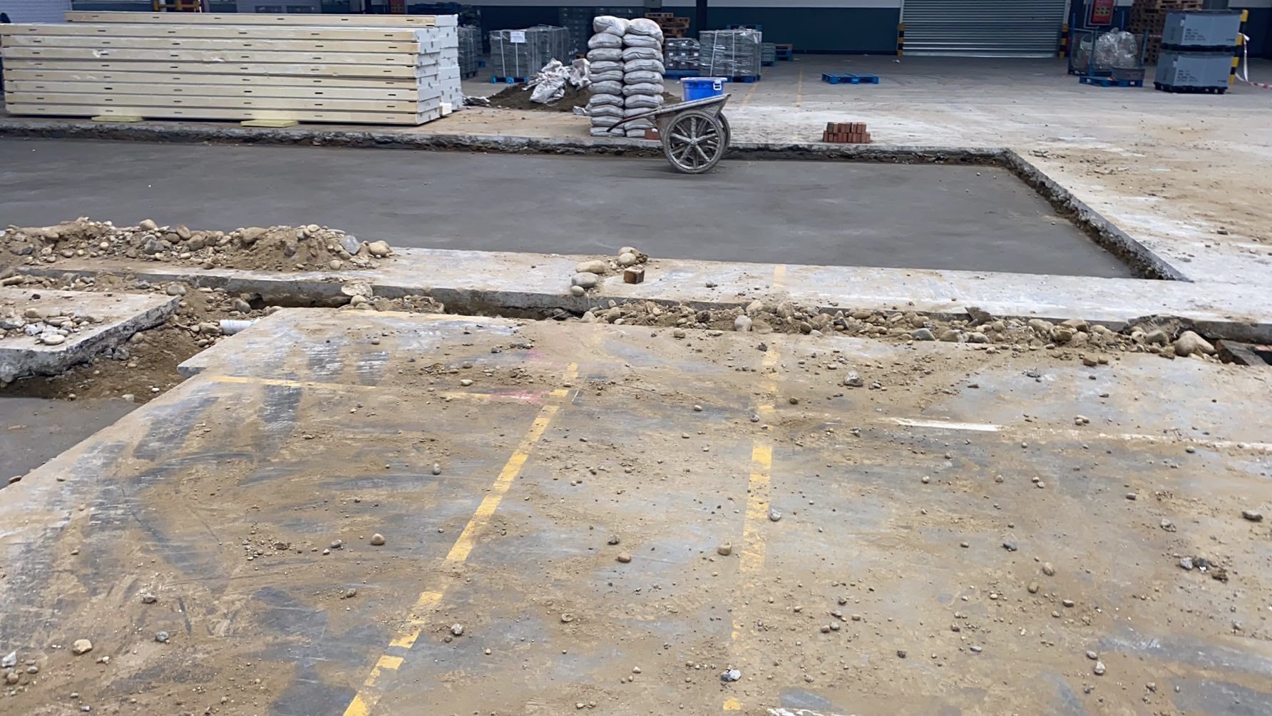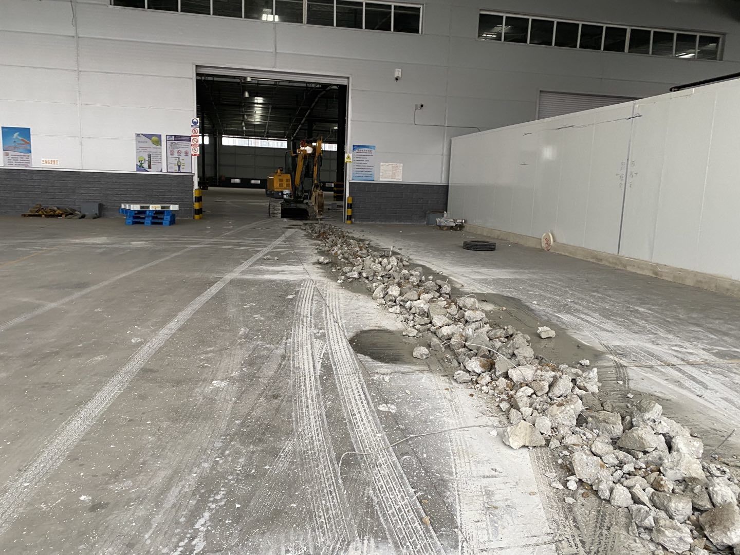 1.排水管道開(kāi)挖破碎80米。 2.吊頂鋼繩安裝完成百分之40.