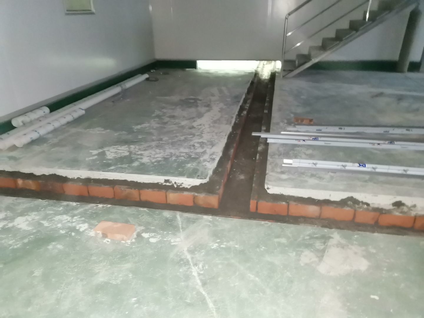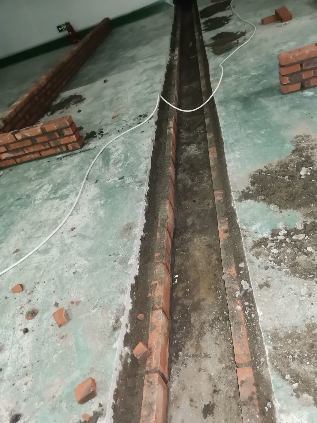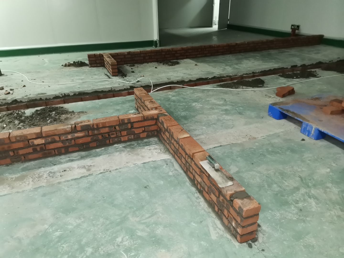 1、排水溝槽破碎100%; 2、調(diào)味間墻板拆除完成100%(新增); 3、彩鋼隔墻放線完成100%; 4、排水管道安裝完成100%; 5、排水溝砌筑完成60%,擋水墻砌筑完成100%; 6、場地清理。