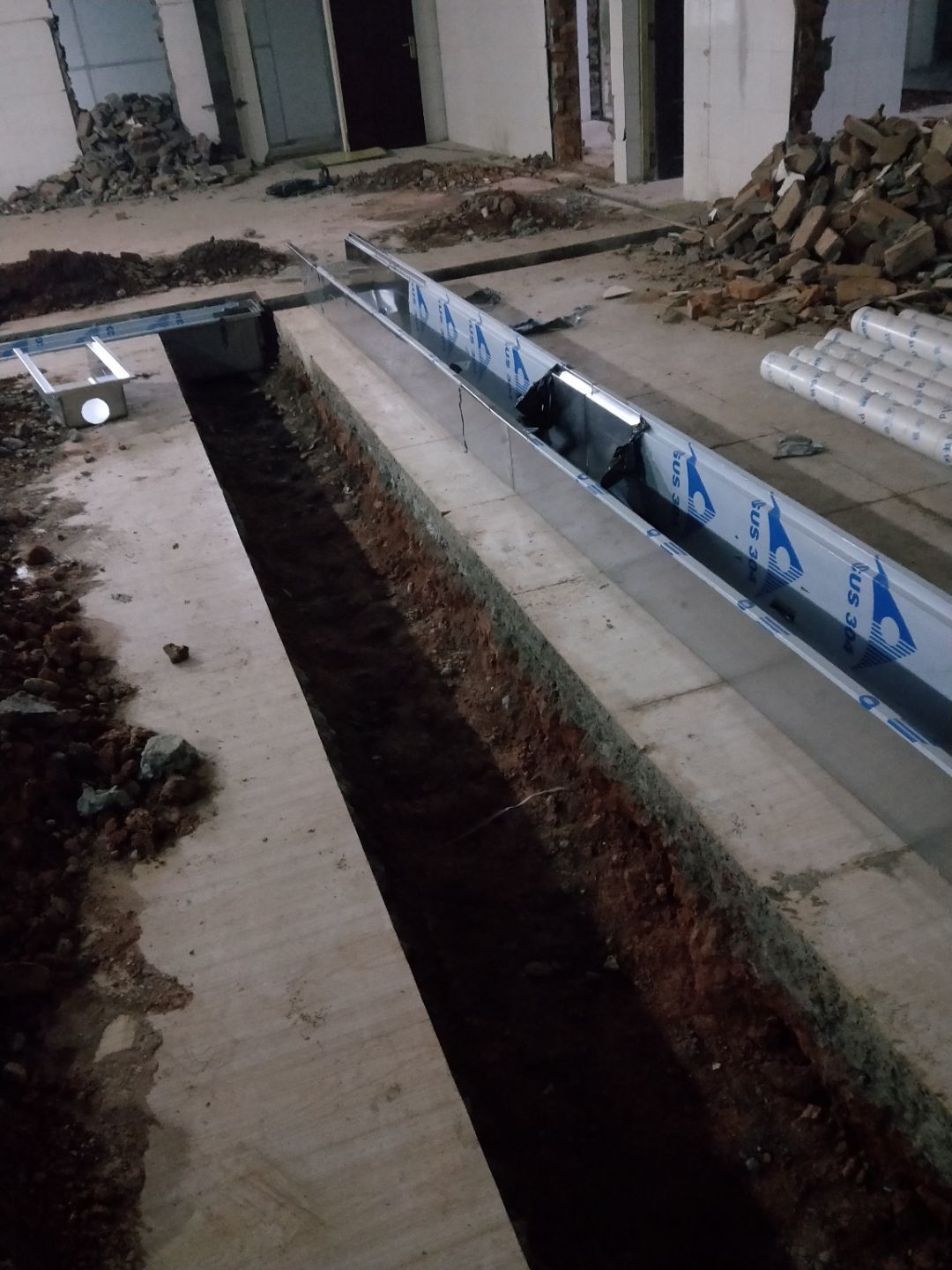 排水溝焊接完成90%,開門洞完成100%,修補門邊完成5%,建渣清理