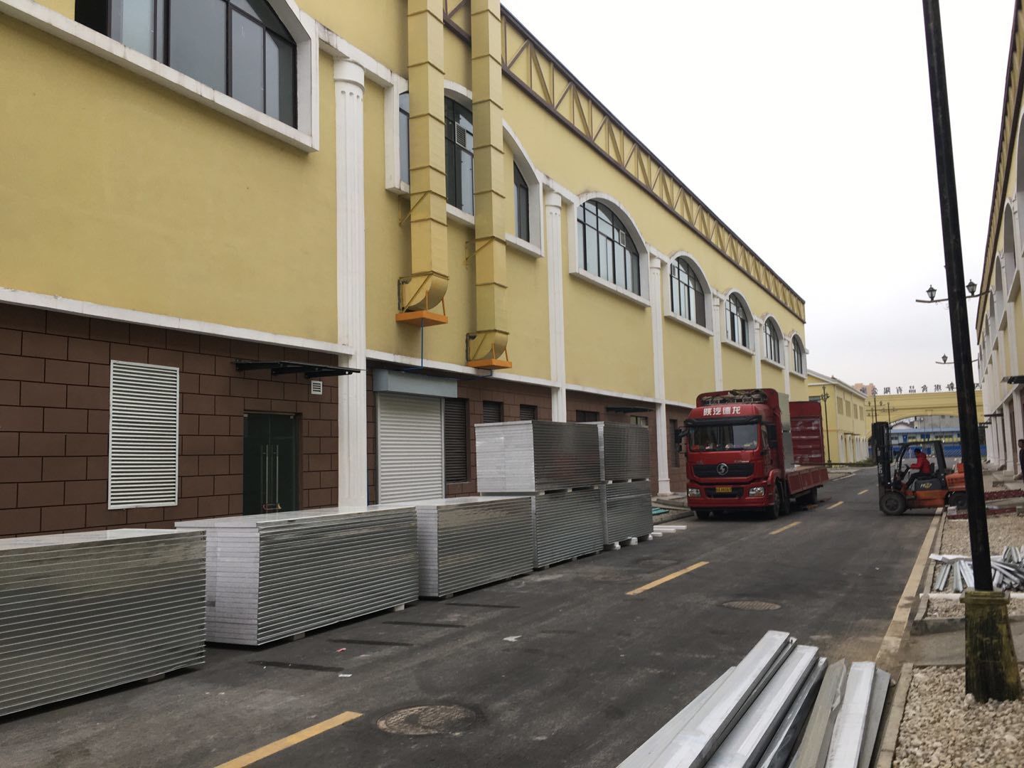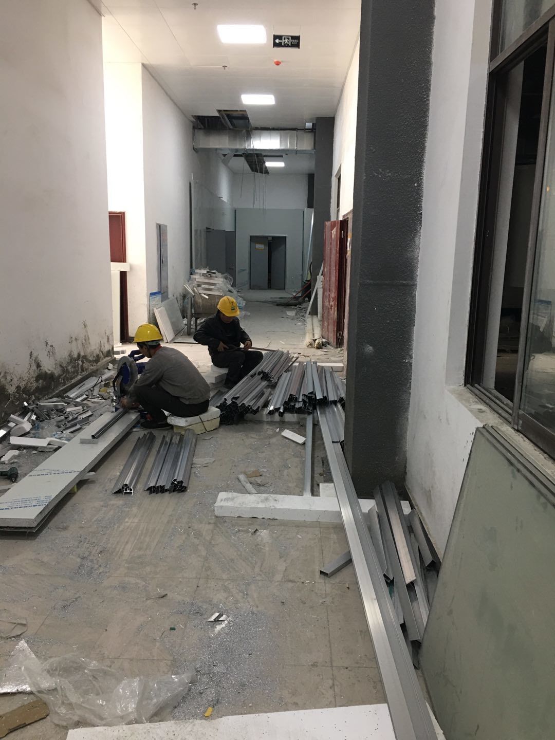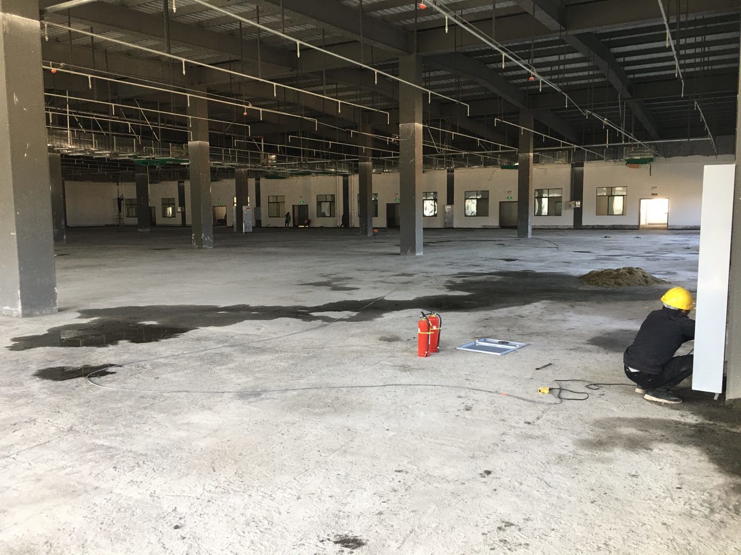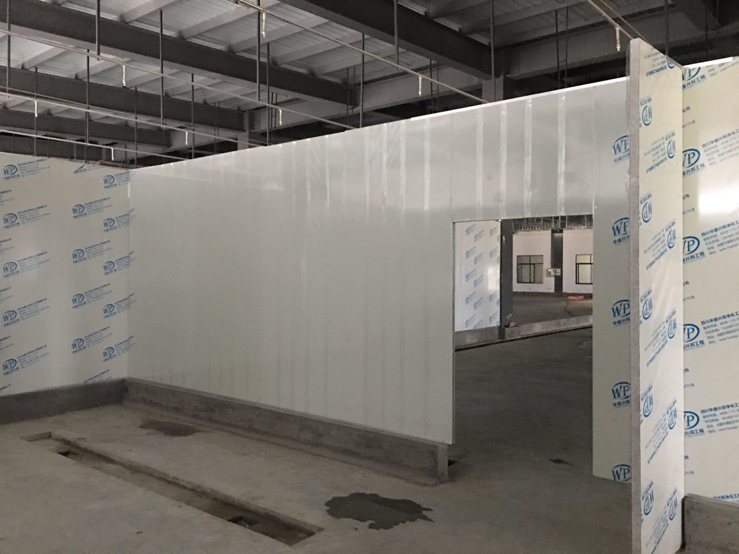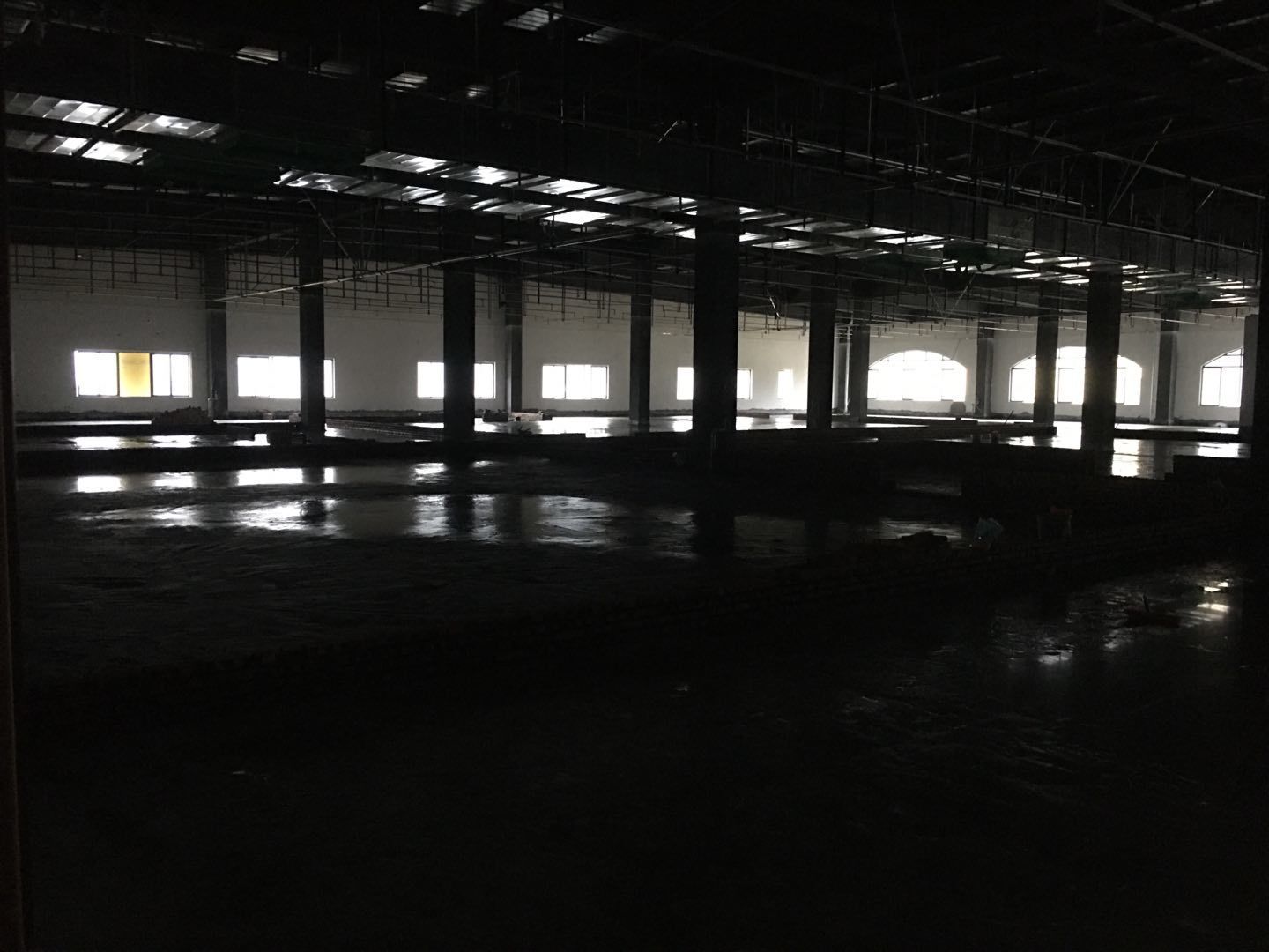 1.簽證彩板內包材庫未封頂,門窗已投合,明日開始全面開預留孔2.空調班組、風盤絲桿支架固定,管道布置焊接。3.水電班組-燈具安裝,配線配管。全部燈具安裝完成。