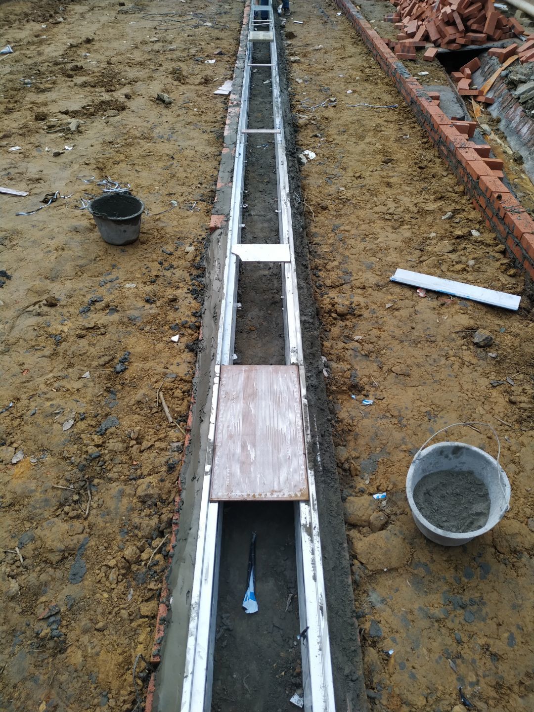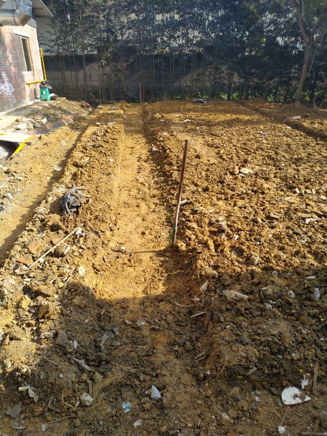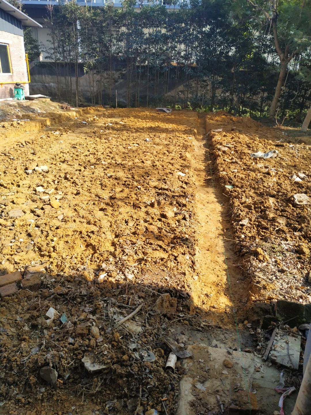 隔油池放線挖掘完成,排水溝和排水管挖掘完成