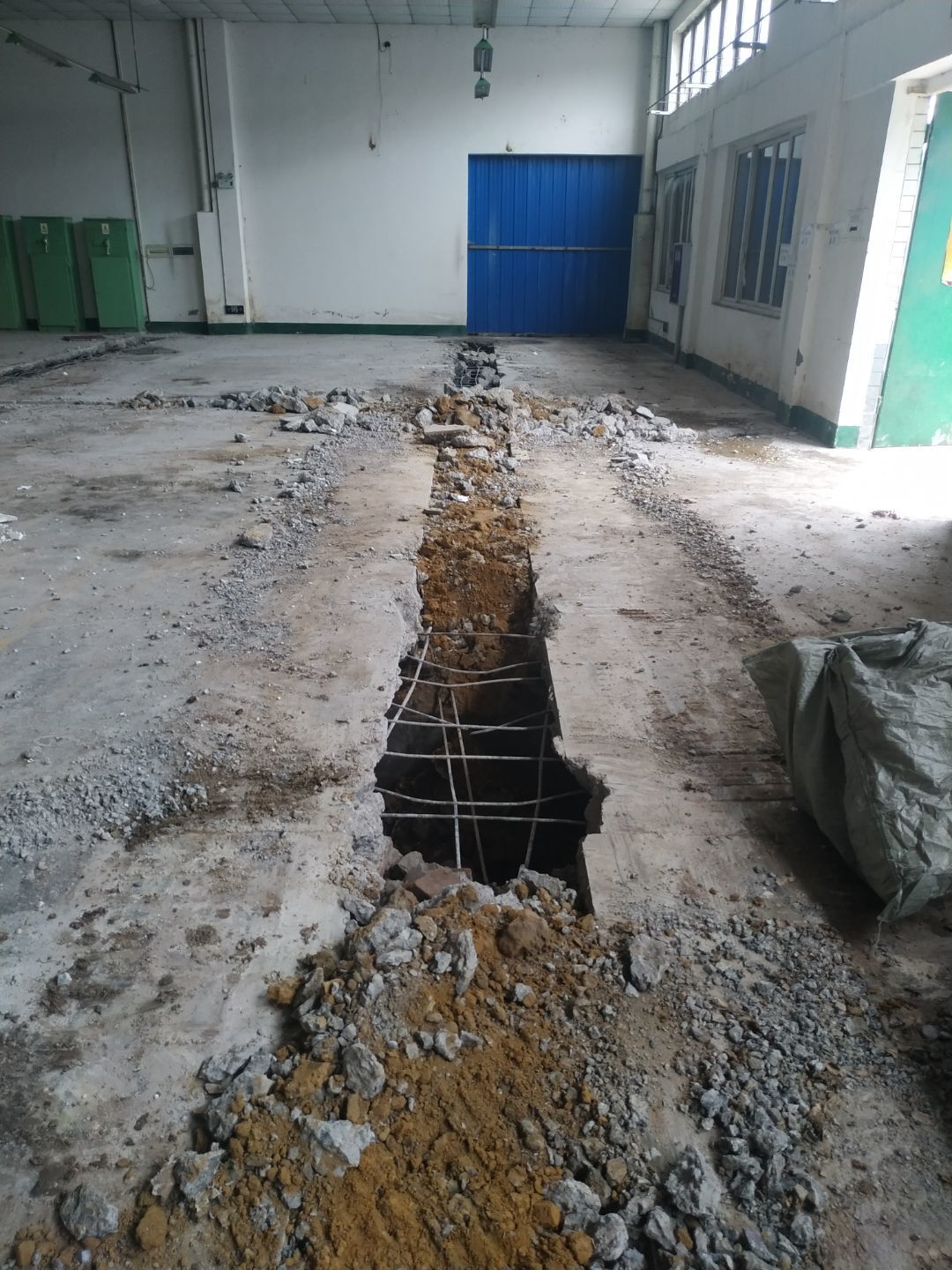 1.室外彩鋼棚拆除完成,2.煉油線排水溝、排水管破碎完成。