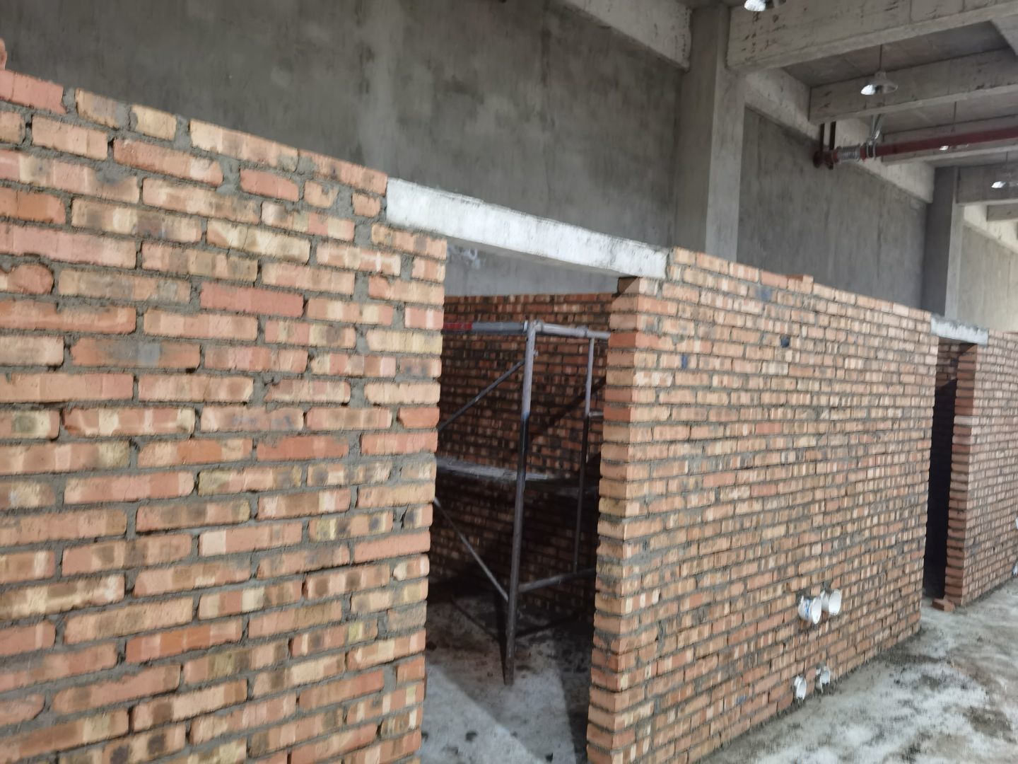 1、廁所貼磚,三層烘房磚勾縫; 2、照明線路敷設 ;3、彩板門體安裝 ;4、二三樓門體安裝。