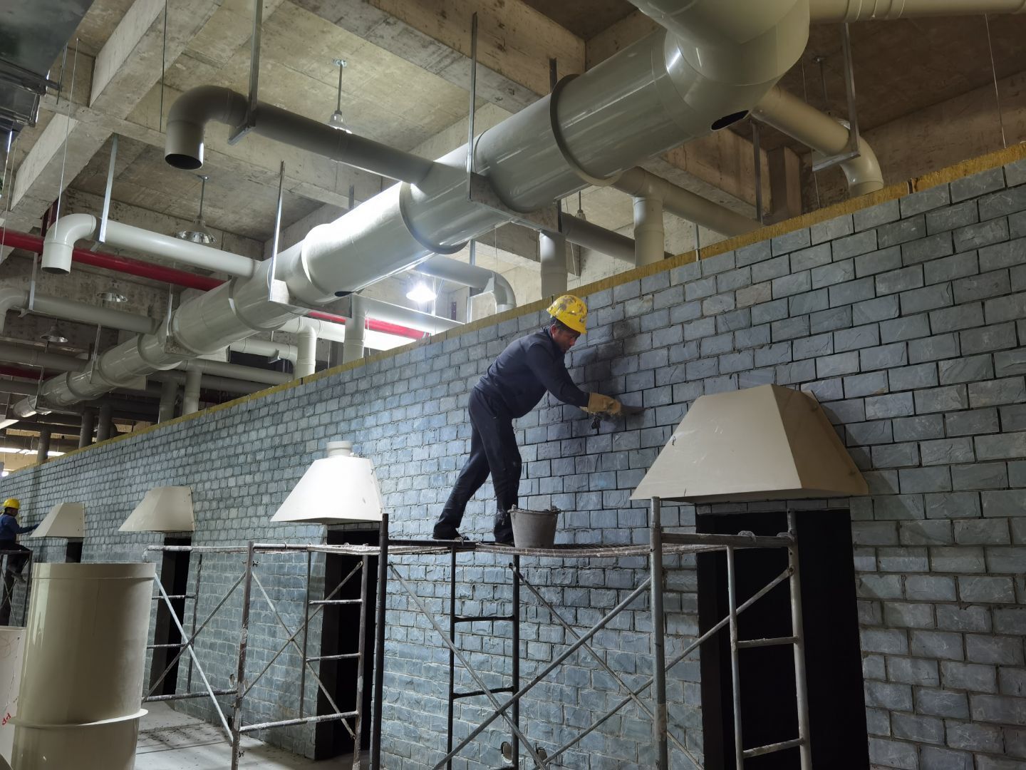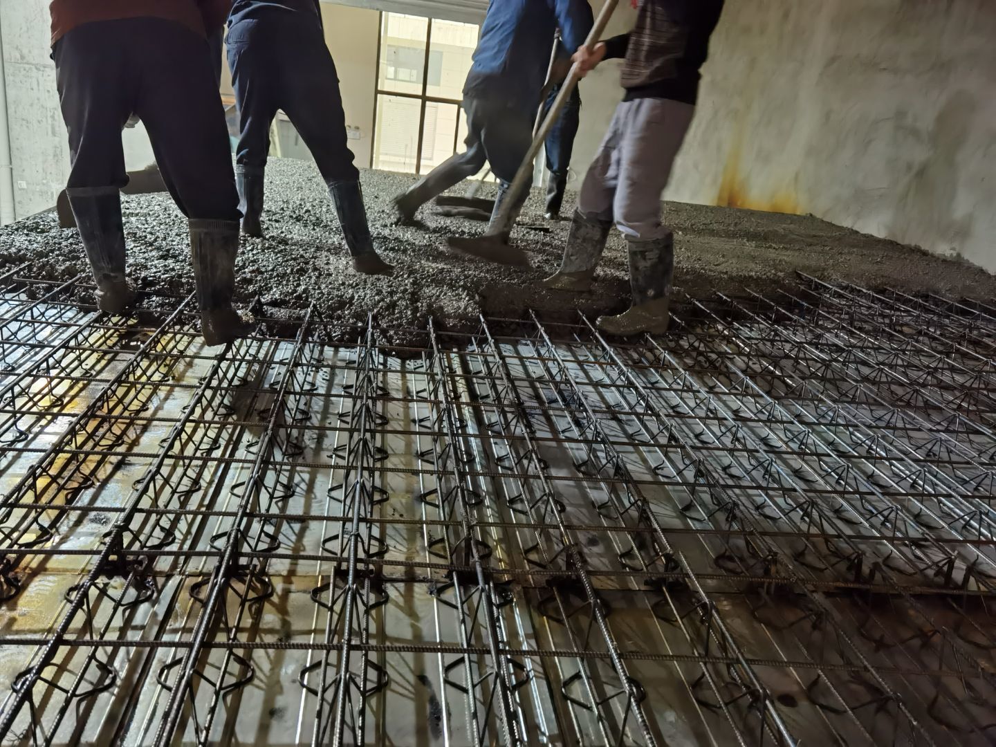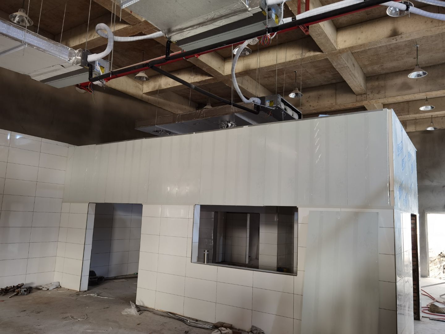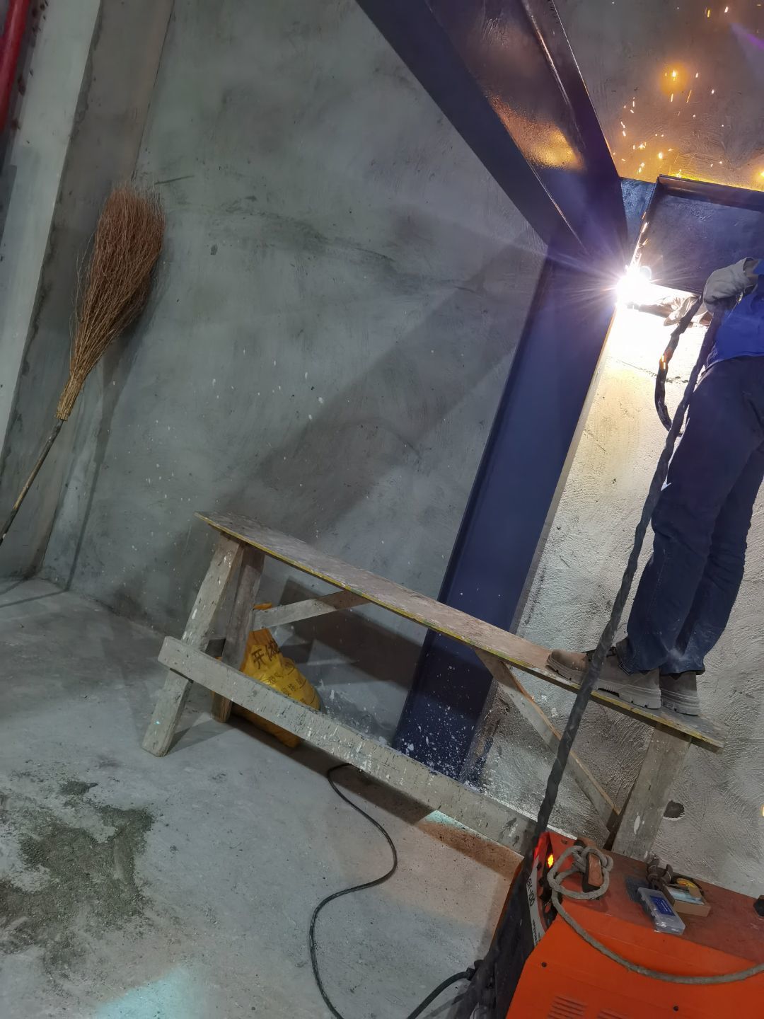 1一層鋼構打商混 2一層鋼構下衛生間砌磚抹灰 3三層衛生間貼瓷磚 4烘房內抹灰 5空調 風管 材料 人員到場