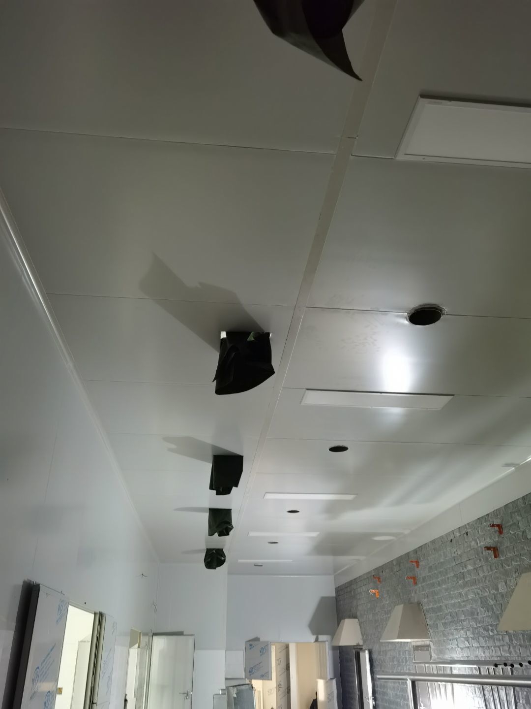 1、彩板吊頂安裝;2、腳踏池砌筑;3、衛生間吊頂;4、門體安裝 。