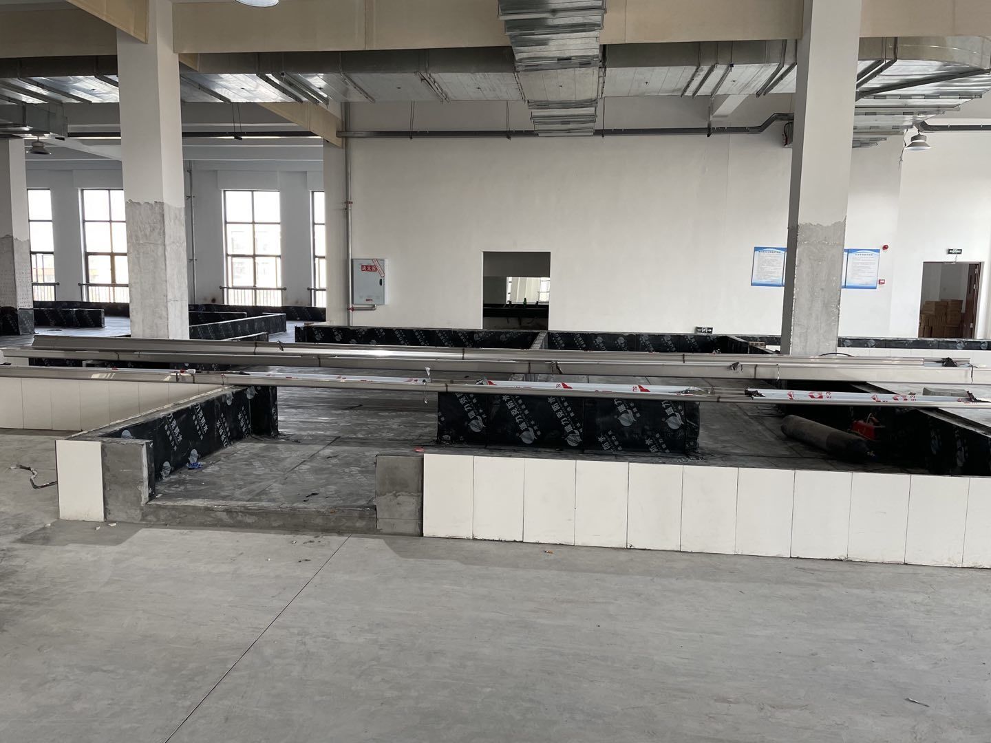 1.固化地坪完成度100%。不銹鋼排水溝焊接完成。