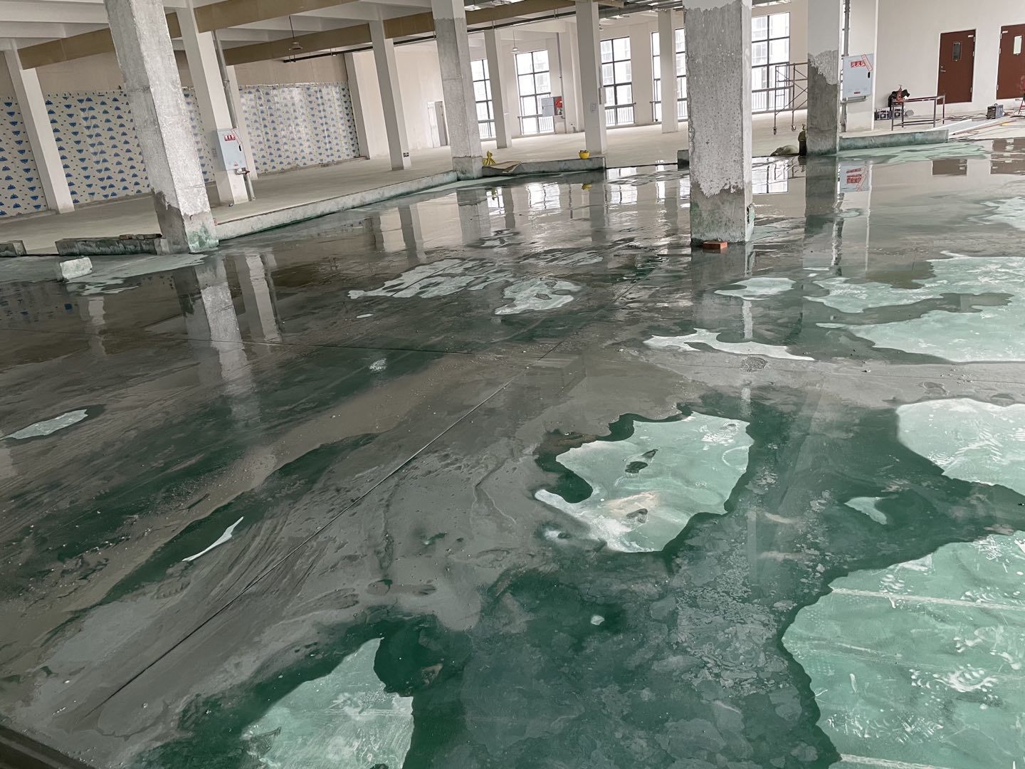 1.發泡混凝土完成;2.鋼筋布置完成50%;3.污水池開挖,設備基礎場地平整。4.金剛砂地坪完成100%,設備基礎完成80%。