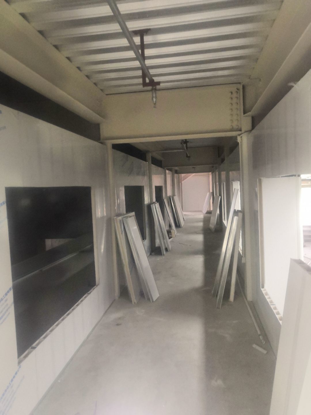 1.二樓接臭氧管子完成100%; 2.二樓裝窗況完成50%; 3二樓包消防箱,包電梯; 4.二樓裝風淋室。