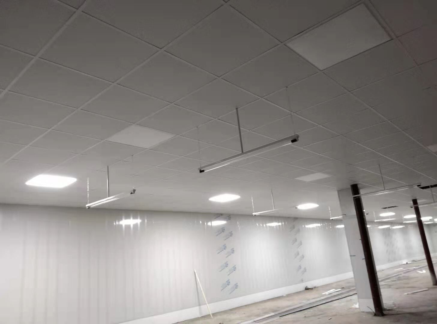 1、前處理間固化和拋光完成,滾揉間地面初磨完成,速凍庫旁邊過道門加大完成,水化霜儲水桶移位完成;2、燈具安裝完成95%,配管穿線完成80%。