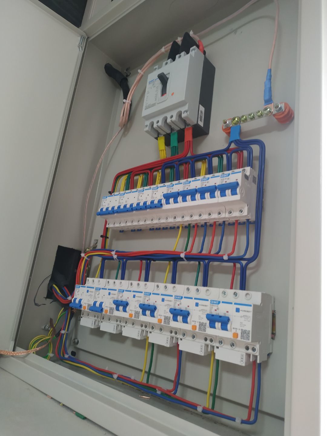 1:給水安裝完成95%;2:撕膜打膠完成;3:照明插座箱安裝完成,回路線安裝通電實驗完成。