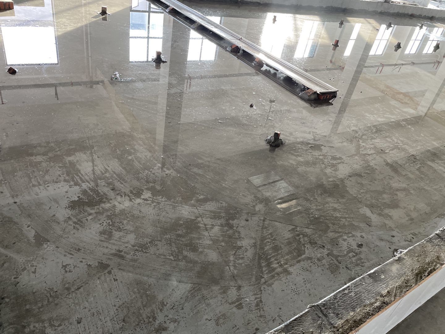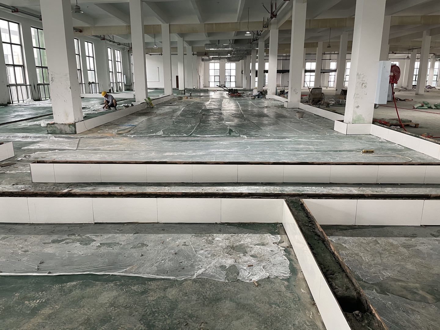1.混凝土打耙完成,防水修補完成,蓄水試驗;2.金剛砂地坪完成,擋水墻瓷磚完成;3.彩鋼板隔斷材料進場。