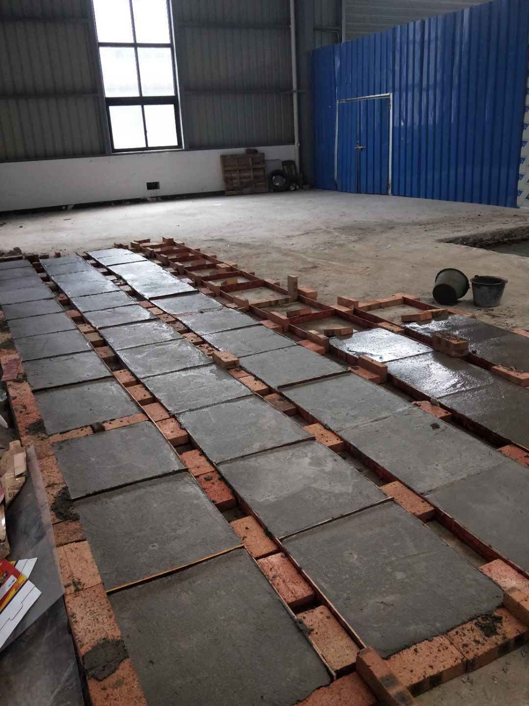 1.彩鋼板完成至85% 2.水電安裝完成至50% 3.擋水墻斜面瓷磚完成至70%.