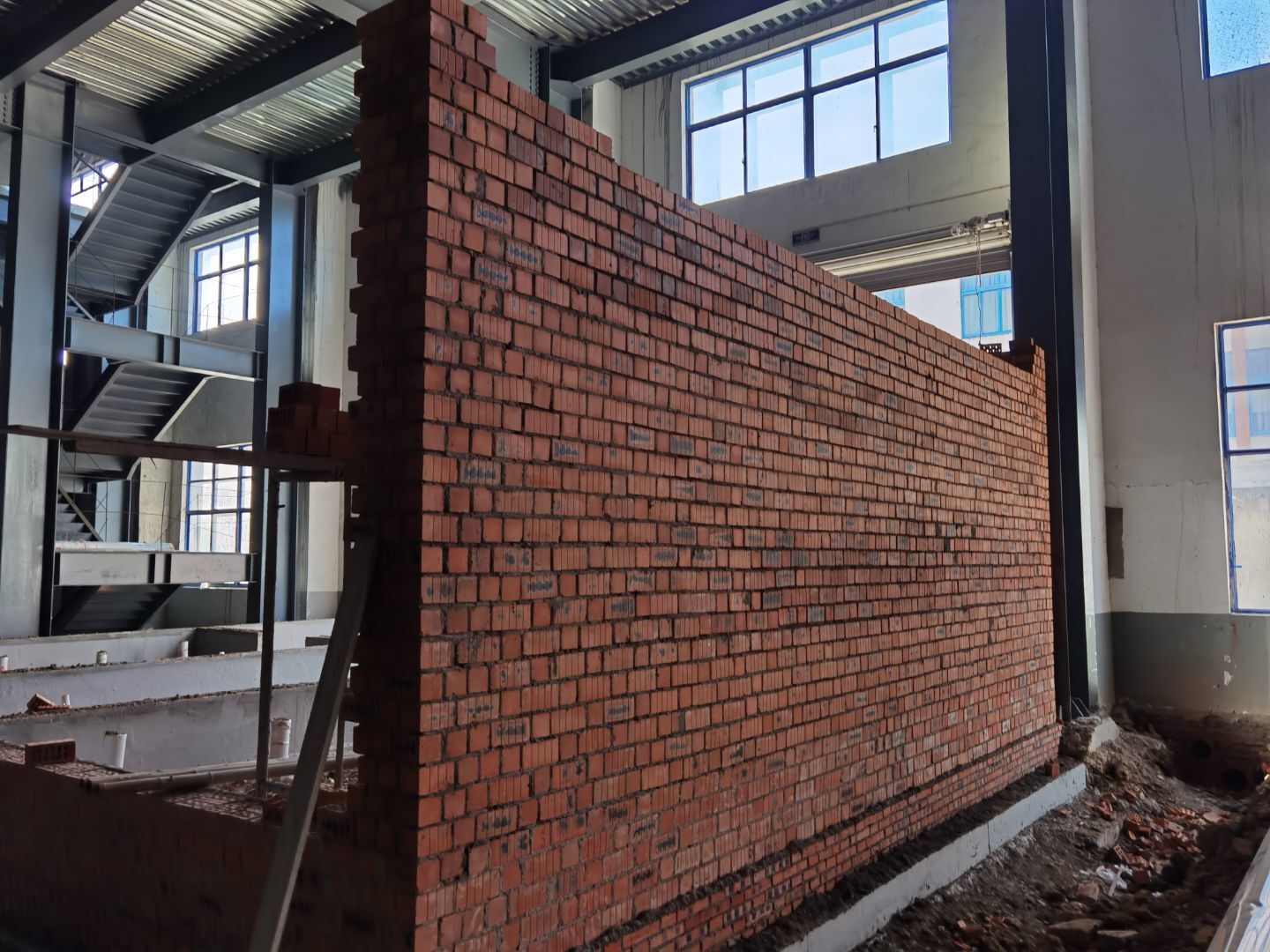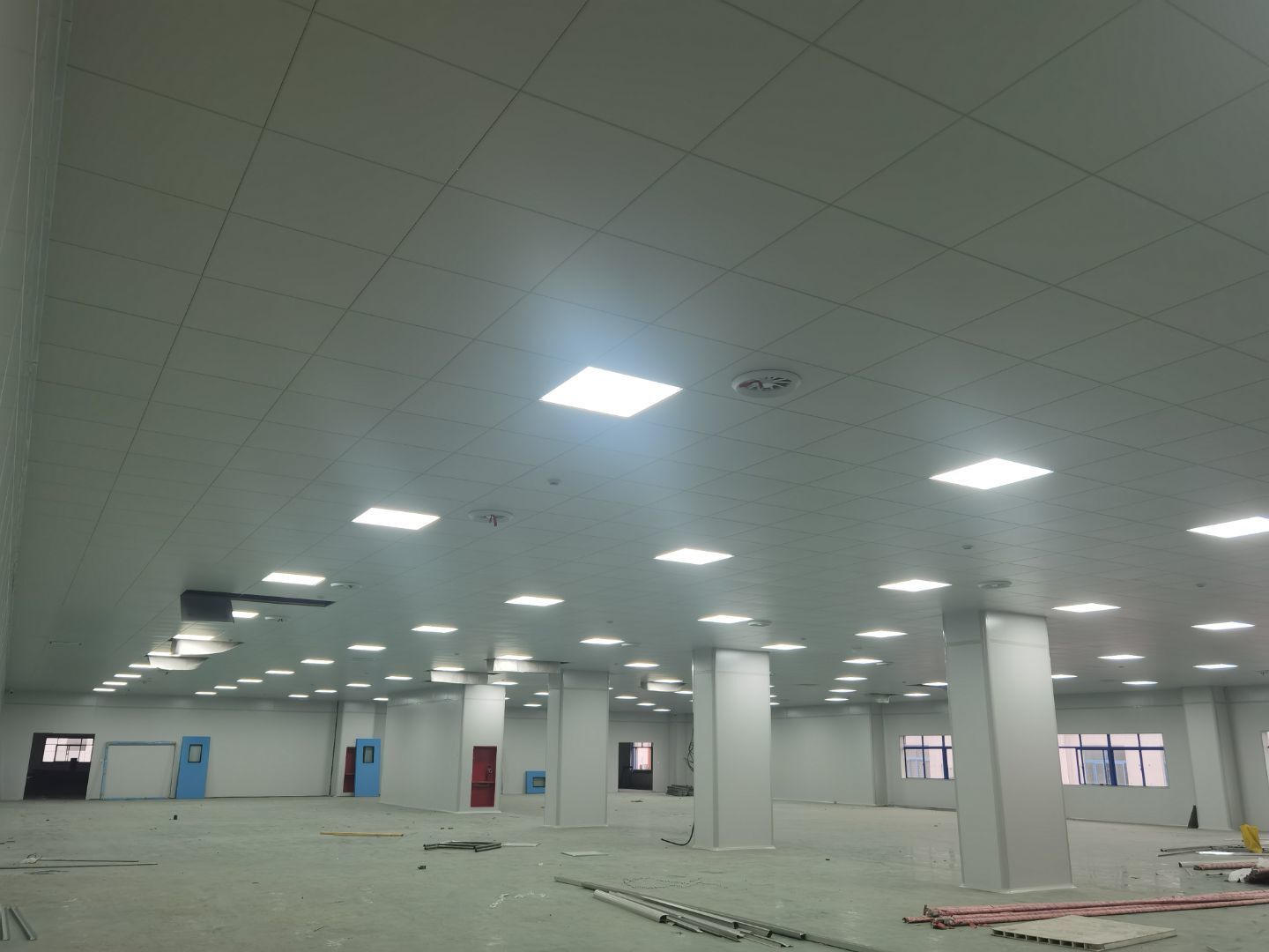 今日施工內容 1.二層彩板安裝 2, 一層門體安裝 3,監控施工布線 4,參觀通道原子灰開始補縫 5,設備就位 6,配電箱壓線頭 7,二樓煙感安裝 8,室外污水池墊層澆筑